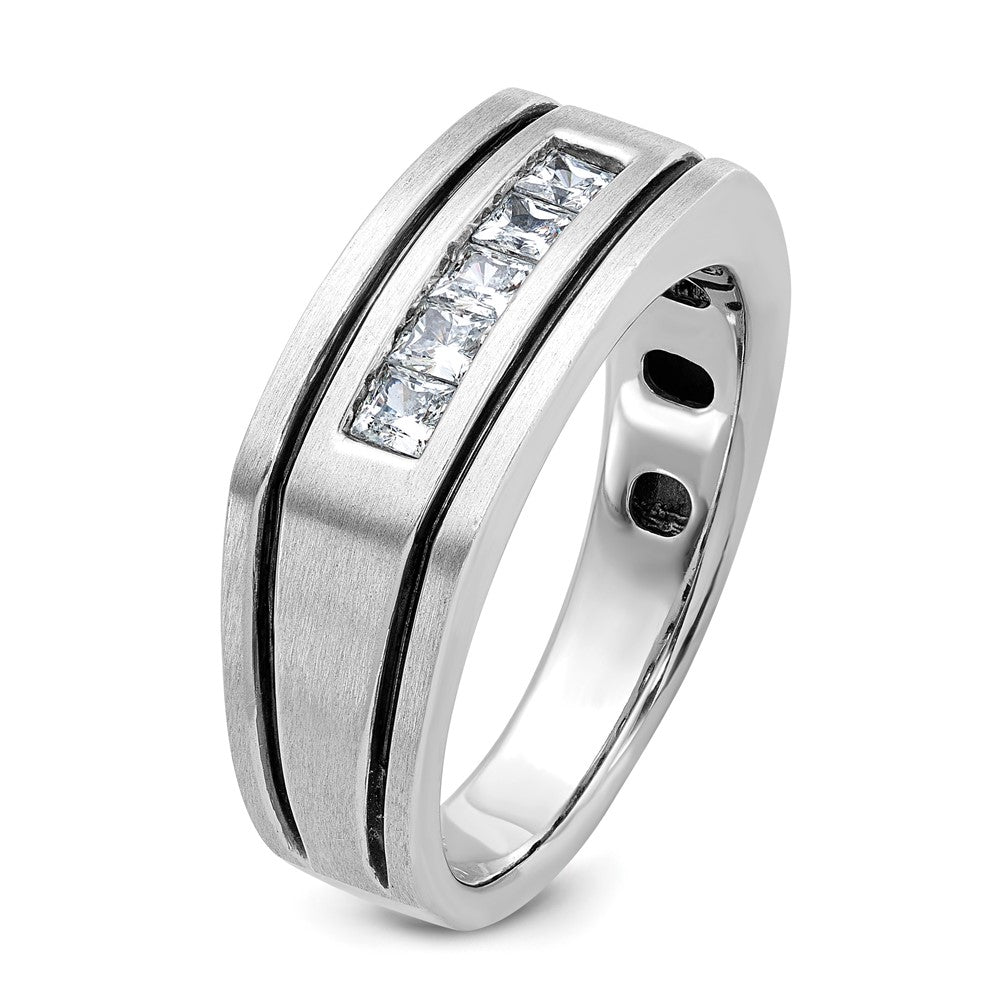 IBGoodman 14k White Gold Men's Polished Satin and Grooved Square 5-Stone Ring Mounting