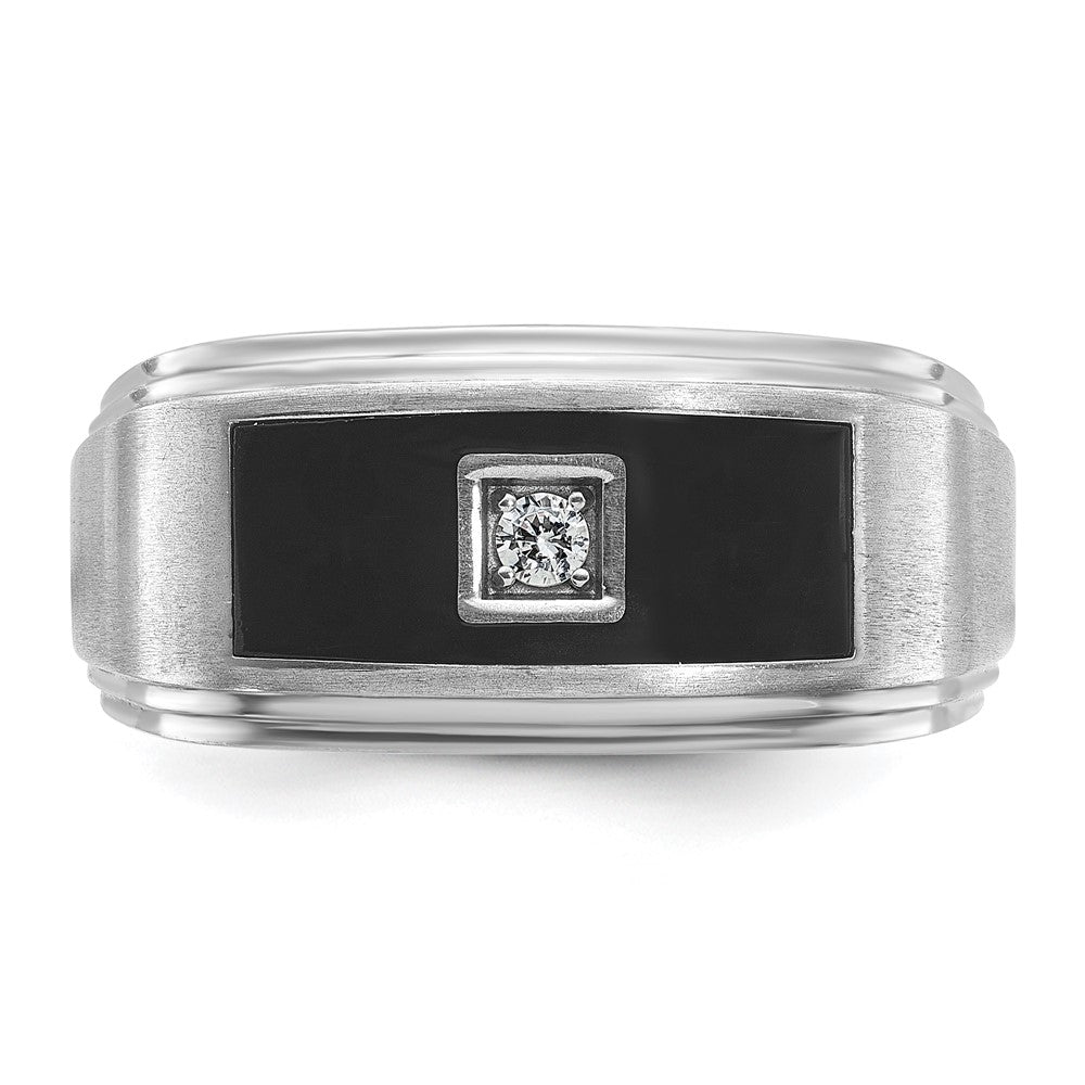 IBGoodman 14k White Gold with Black Enamel Men's Polished Satin and Grooved 1/20 Carat AA Quality Diamond Ring