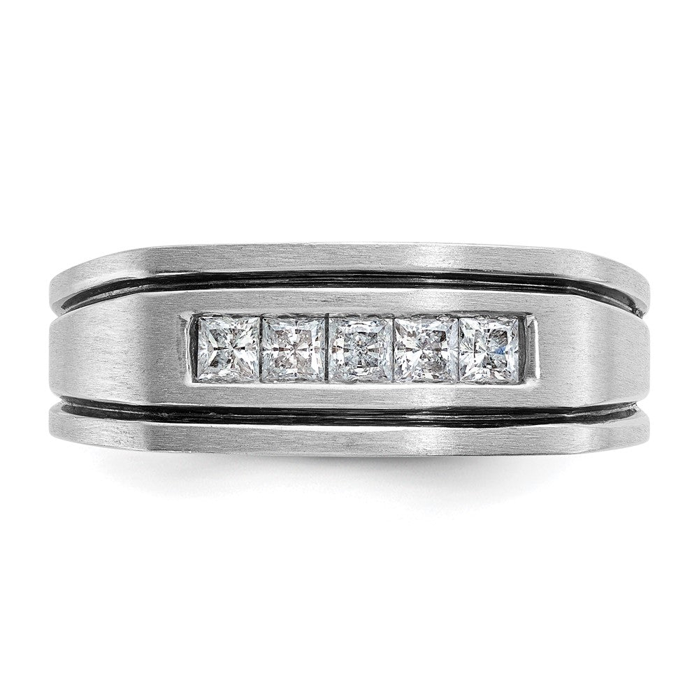 IBGoodman 14k White Gold with Black Rhodium Men's Polished Satin and Grooved Square 5-Stone 1/2 Carat AA Quality Diamond Ring
