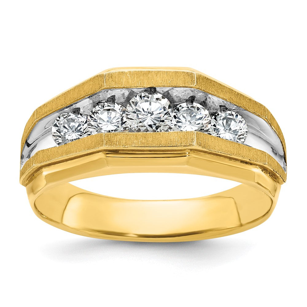 IBGoodman 14k with White Rhodium Men's Polished and Satin 5-Stone 1 Carat AA Quality Diamond Ring