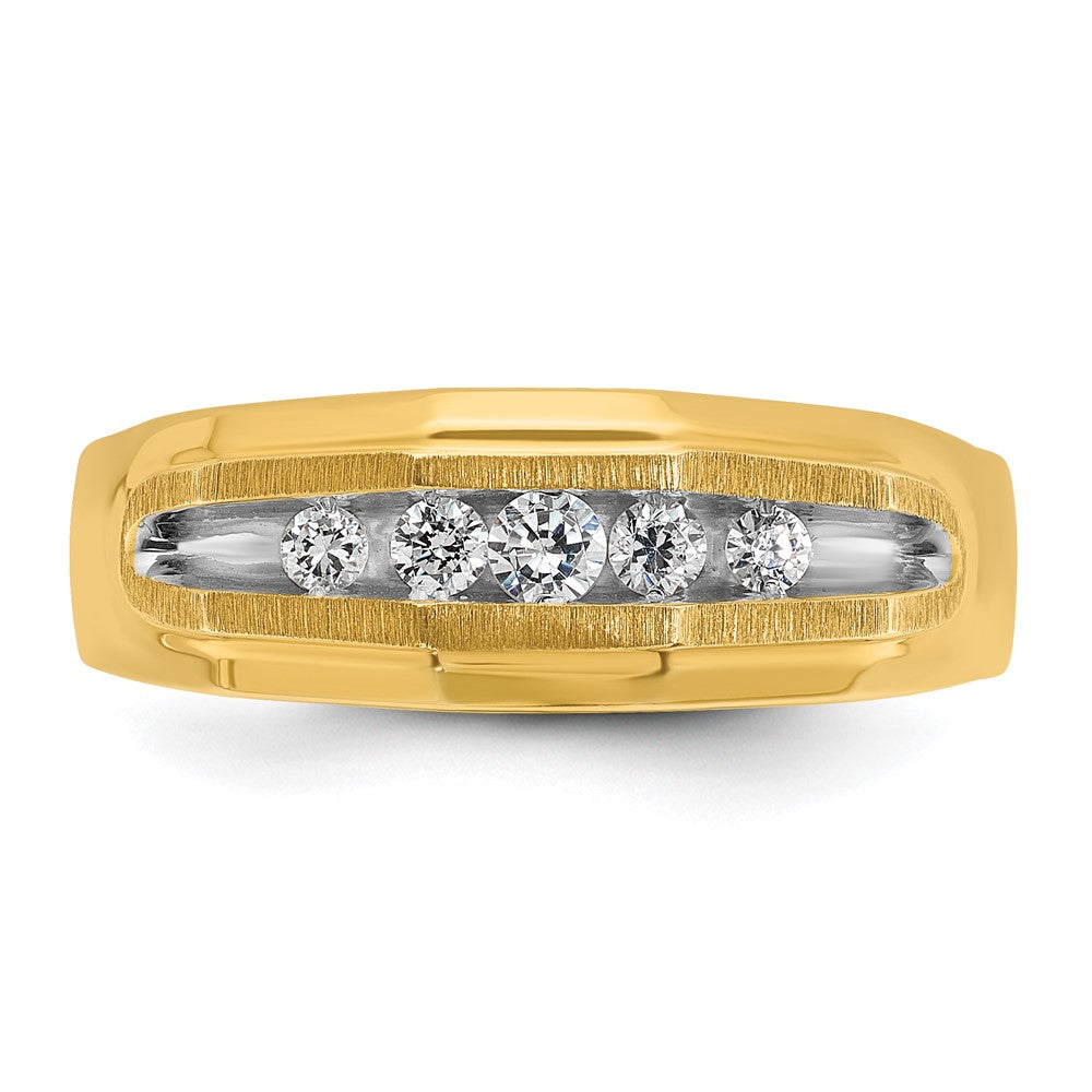 IBGoodman 14k with White Rhodium Men's Polished and Satin 5-Stone 1/4 Carat AA Quality Diamond Ring