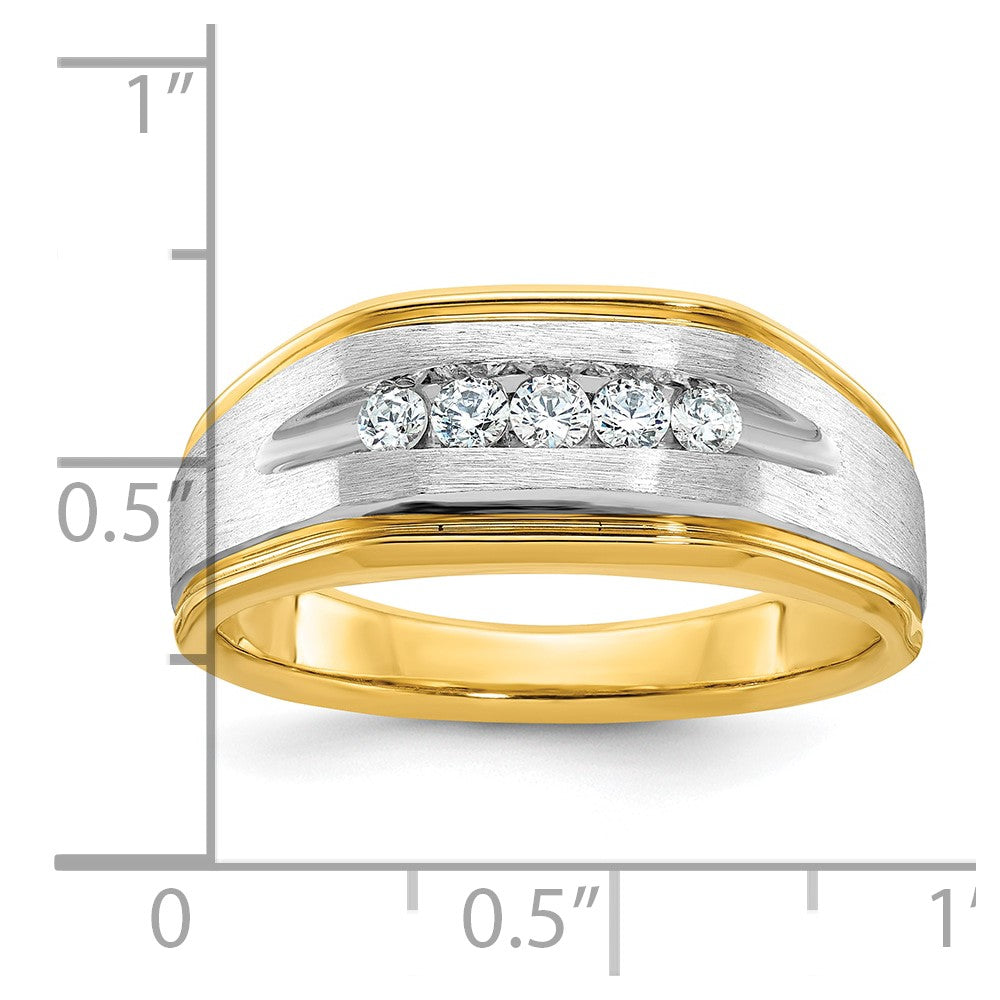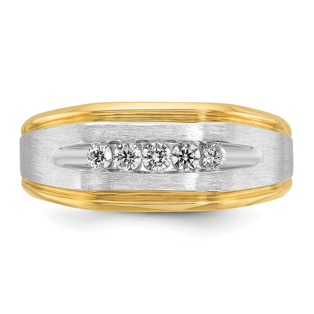 IBGoodman 14k with White Rhodium Men's Polished Satin and Grooved 5-Stone 1/4 Carat AA Quality Diamond Ring