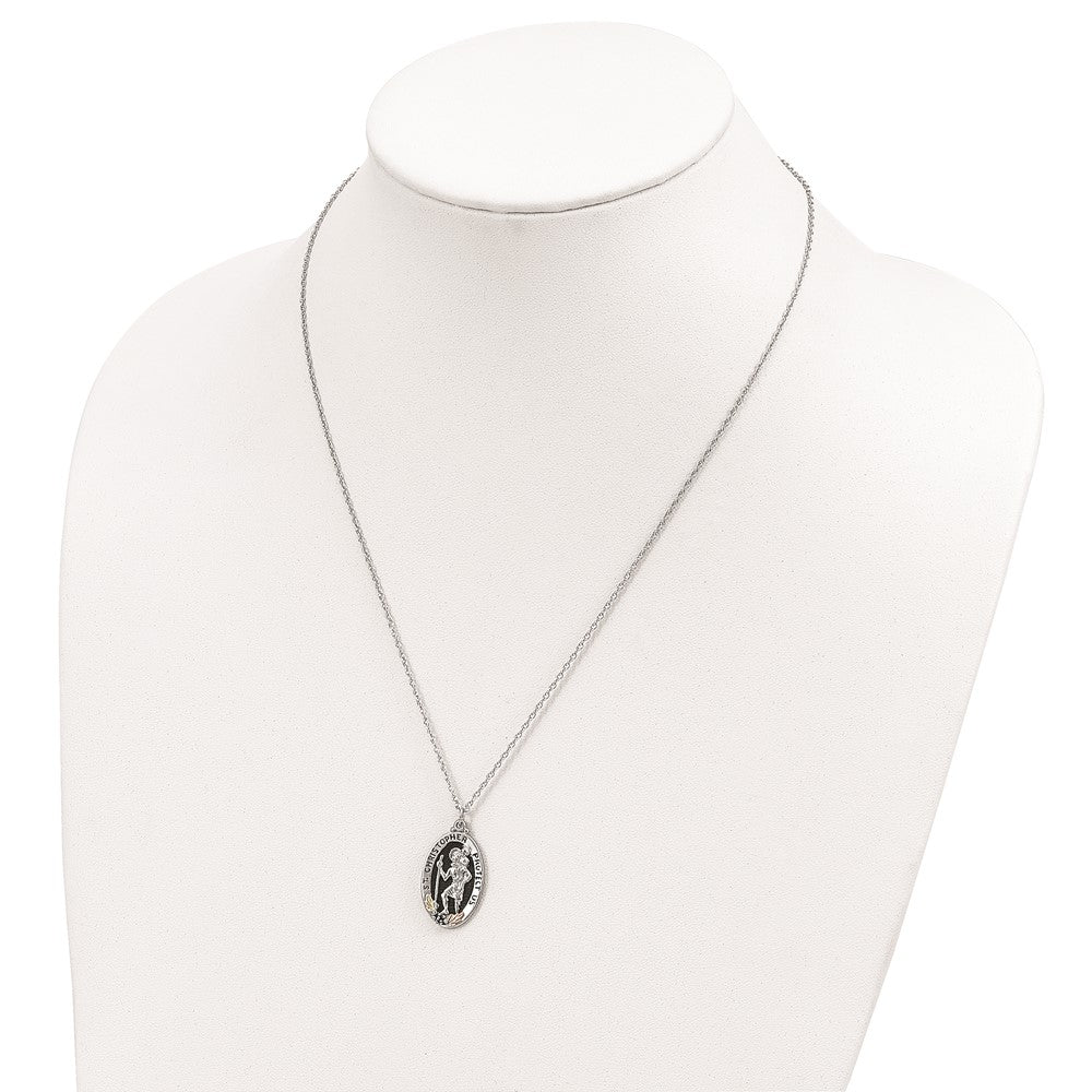Landstrom's Mt. Rushmore Black Hills Sterling Silver 12K Gold Accents Antiqued St. Christopher Protect Us Spring Ring Clasp Necklace