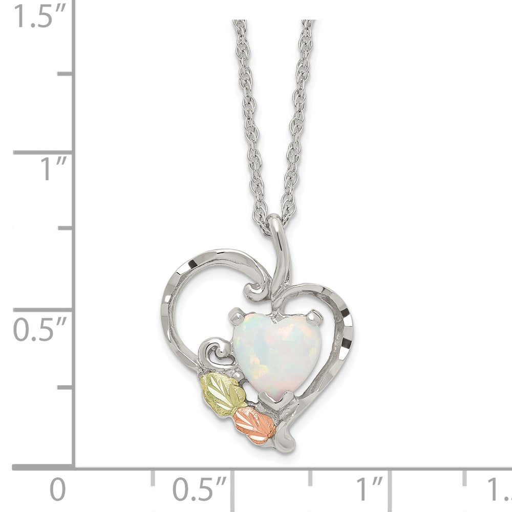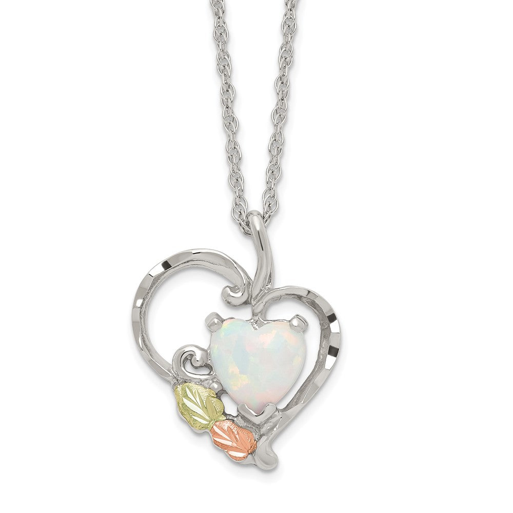 Landstrom's Mt. Rushmore Black Hills Sterling Silver 12K Gold Accents Lab Created White Opal Heart Spring Ring Clasp Necklace