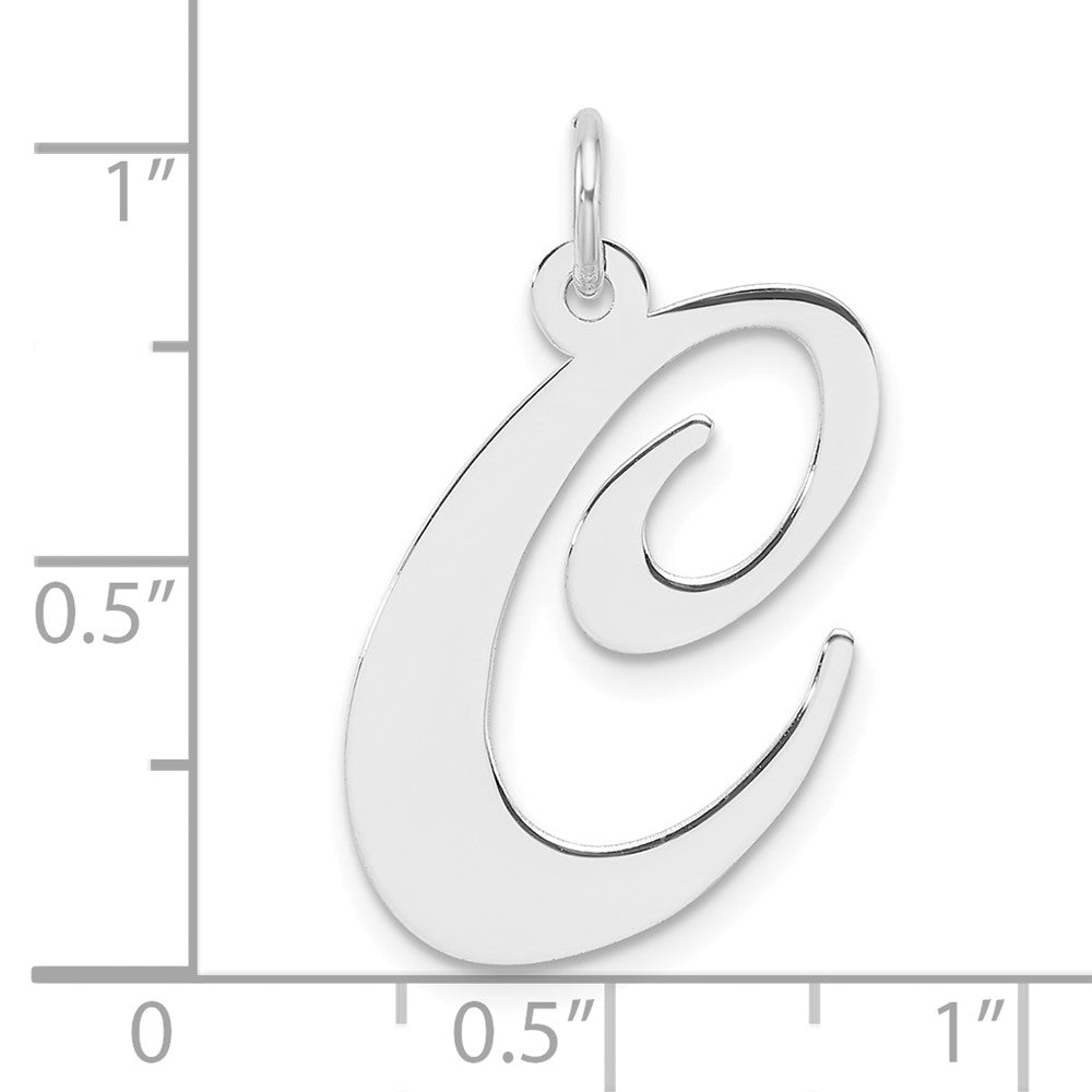 Large Sterling Silver Rhodium-plated Fancy Script Letter C Initial Charm