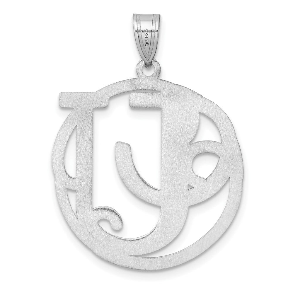 Large Sterling Silver Rhodium-plated Fancy Script Letter U Initial Pendant