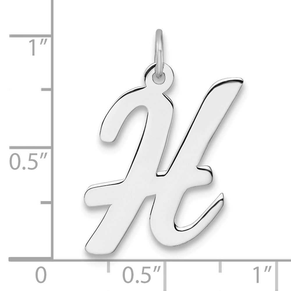 Large Sterling Silver Rhodium-plated Script Letter H Initial Charm