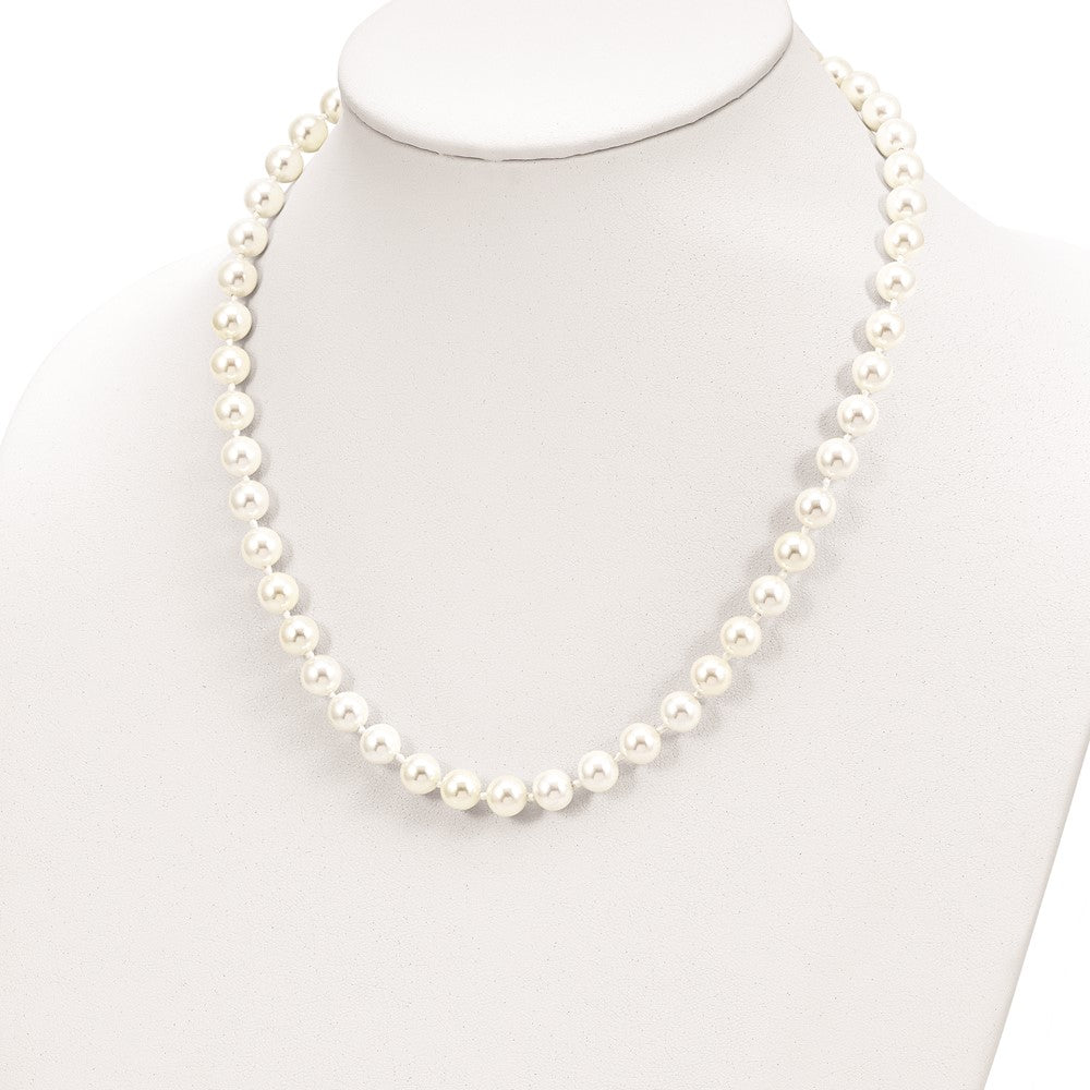 Majestic Sterling Silver Rhodium-plated 8-9mm White Imitation Shell Pearl Hand-knotted Necklace