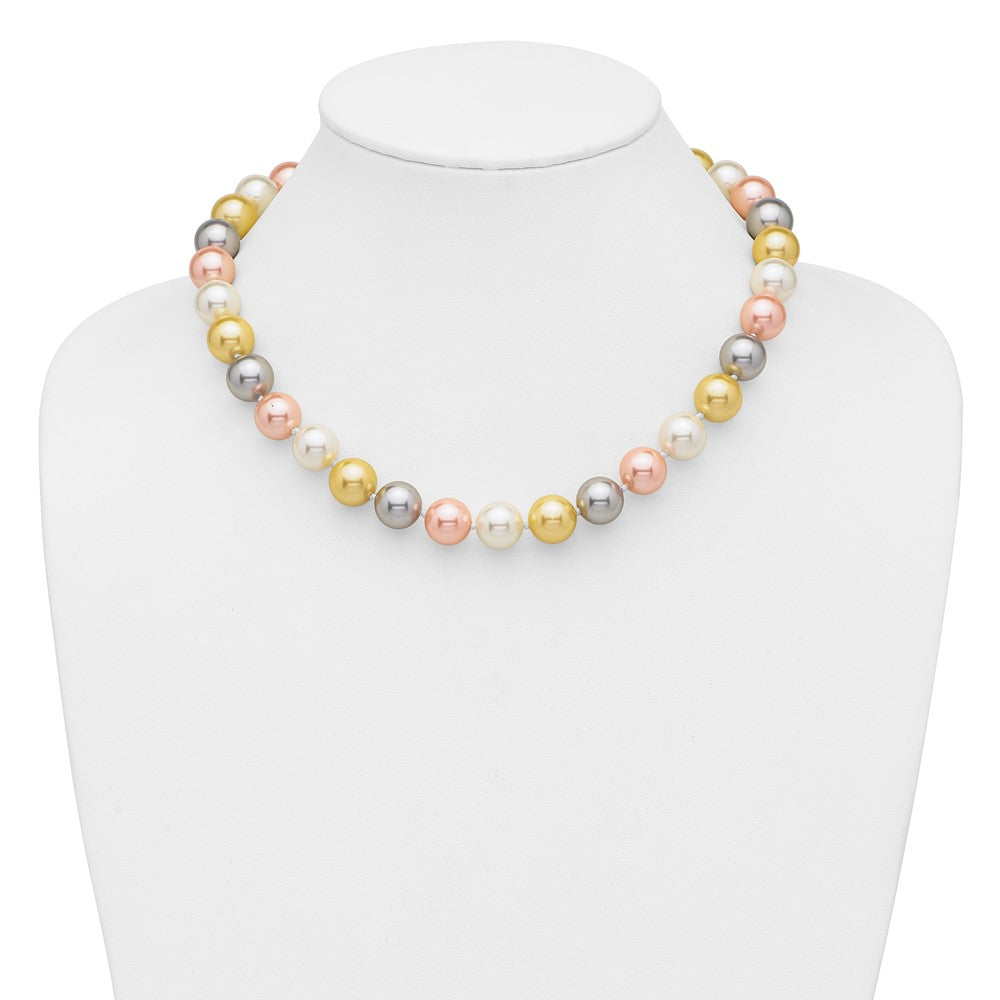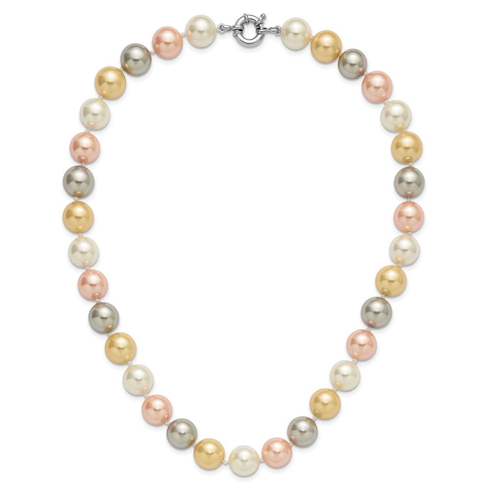 Majestik Sterling Silver Rhodium-plated 12- Multi-Color Imitation Shell Pearl Hand-knotted Necklace