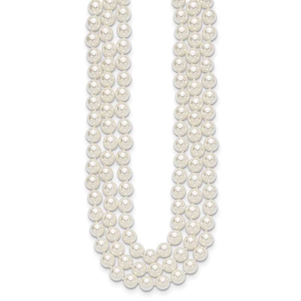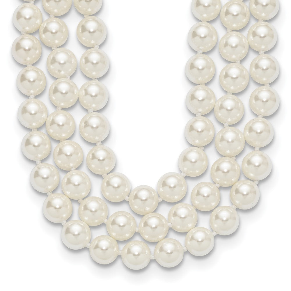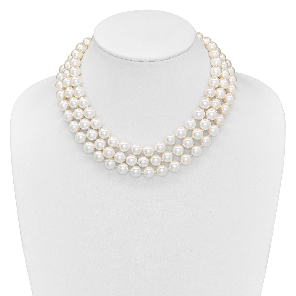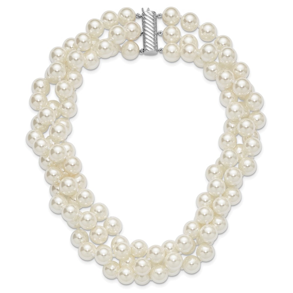 Majestik Sterling Silver Rhodium-plated 3 Row 10- White Imitation Shell Pearl Hand-knotted Necklace