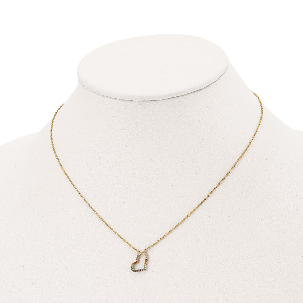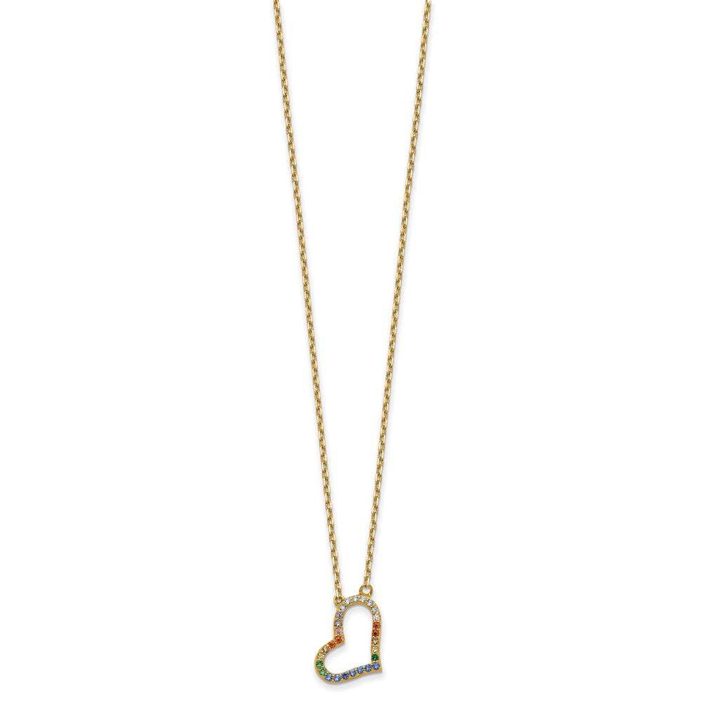 Prizma Sterling Silver Gold-tone 14K Flash Gold-plated Colorful CZ Heart Necklace with Extender