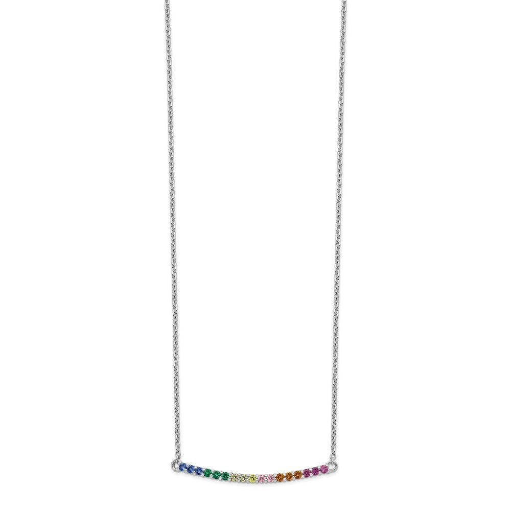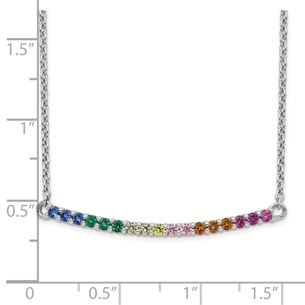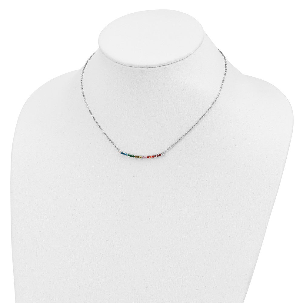 Prizma Sterling Silver Rhodium-plated Colorful CZ Curved Bar Necklace
