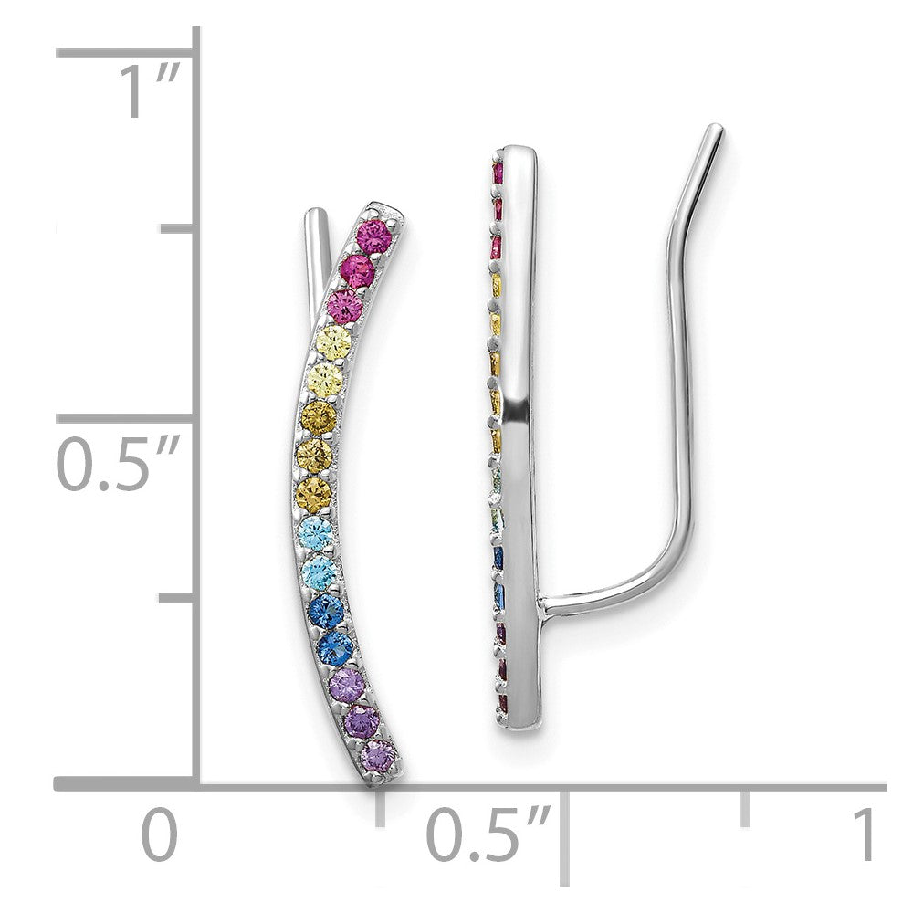 Prizma Sterling Silver Rhodium-plated Colorful CZ Ear Climbers