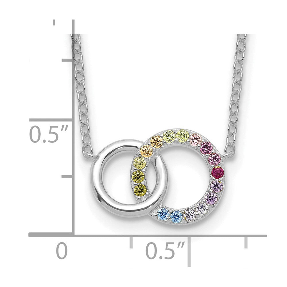 Prizma Sterling Silver Rhodium-plated Colorful CZ Intertwined Circle Necklace with Extender