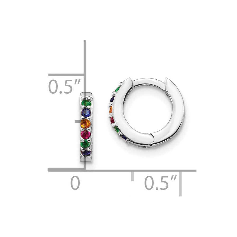 Prizma Sterling Silver Rhodium-plated Colorful CZ Small Hinged Hoop Earrings
