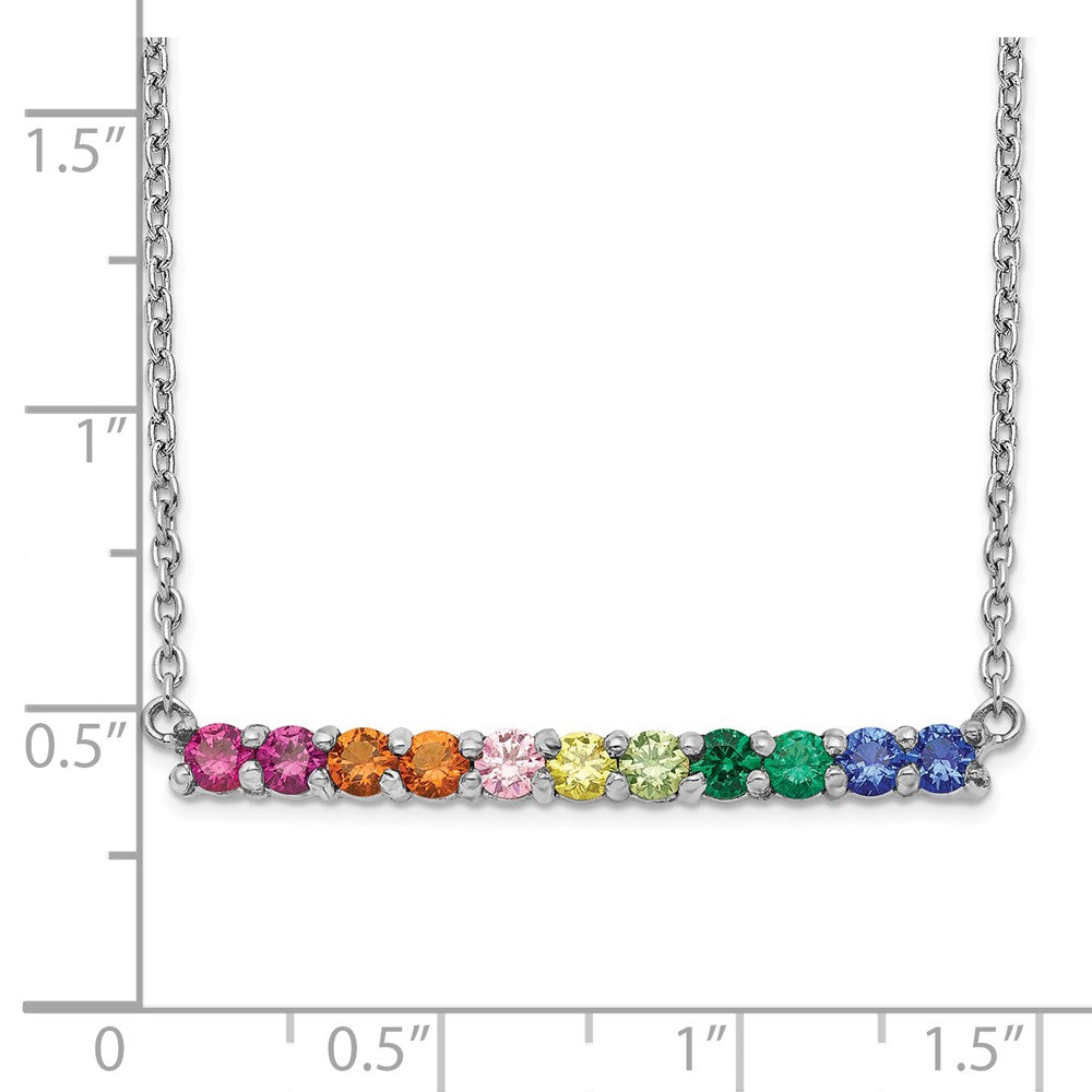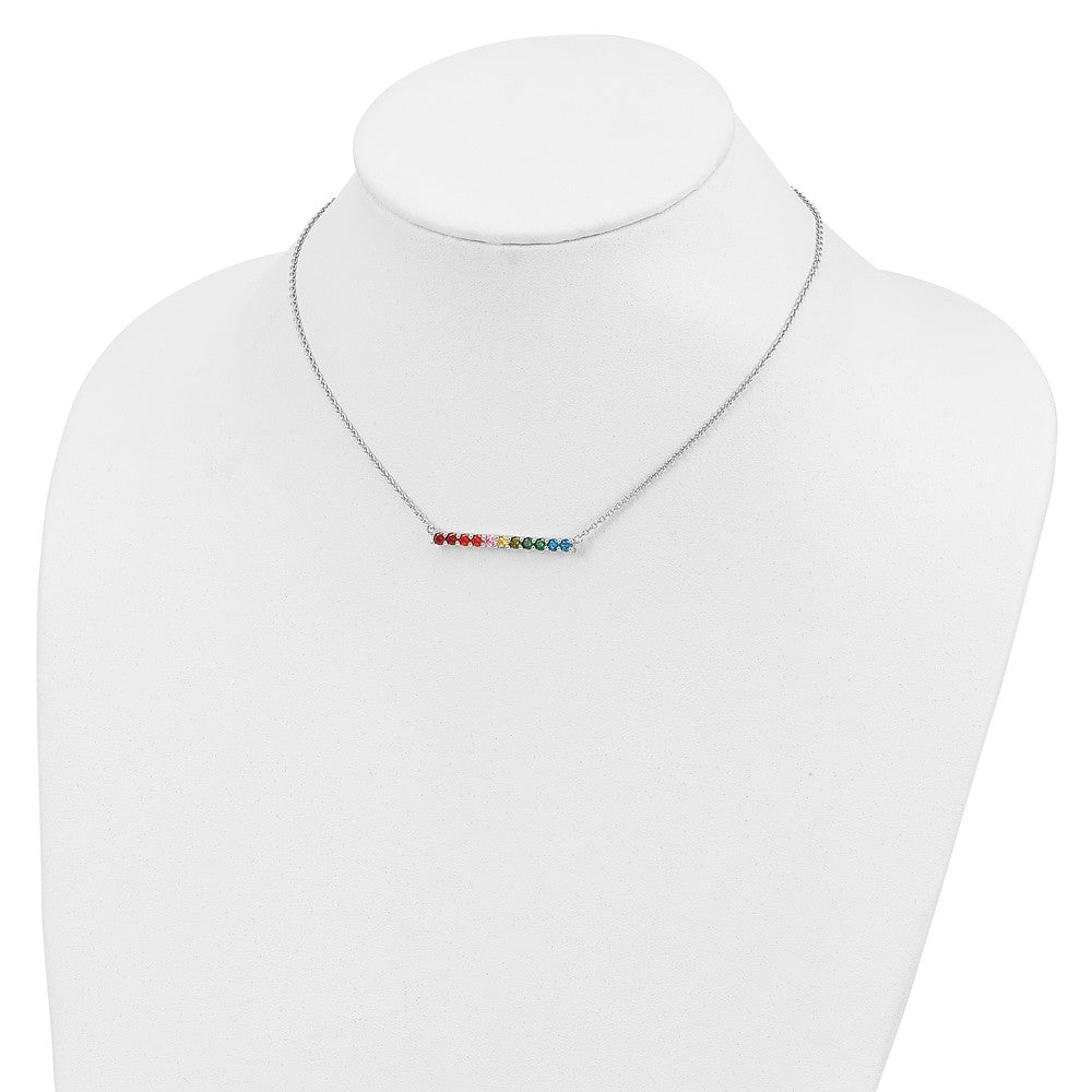 Prizma Sterling Silver Rhodium-plated with Fancy Lobster Clasp Colorful CZ Bar Necklace