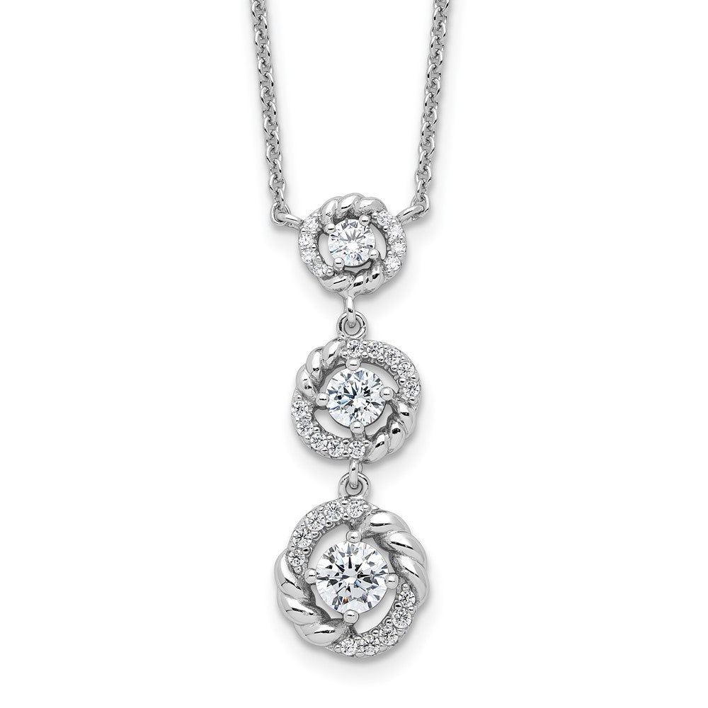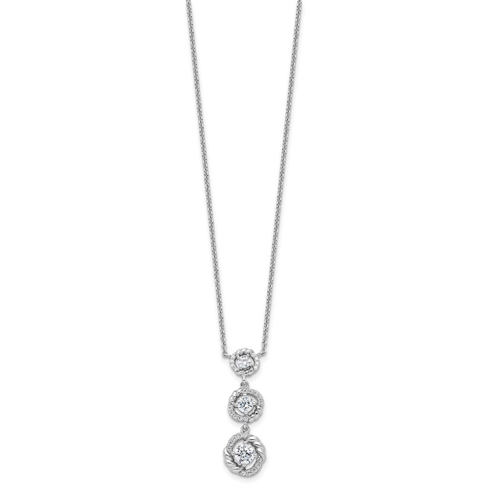 Pure Fire Sterling Silver Rhod-plated Fancy 16in w/2in ext CZ Dangle Neckla