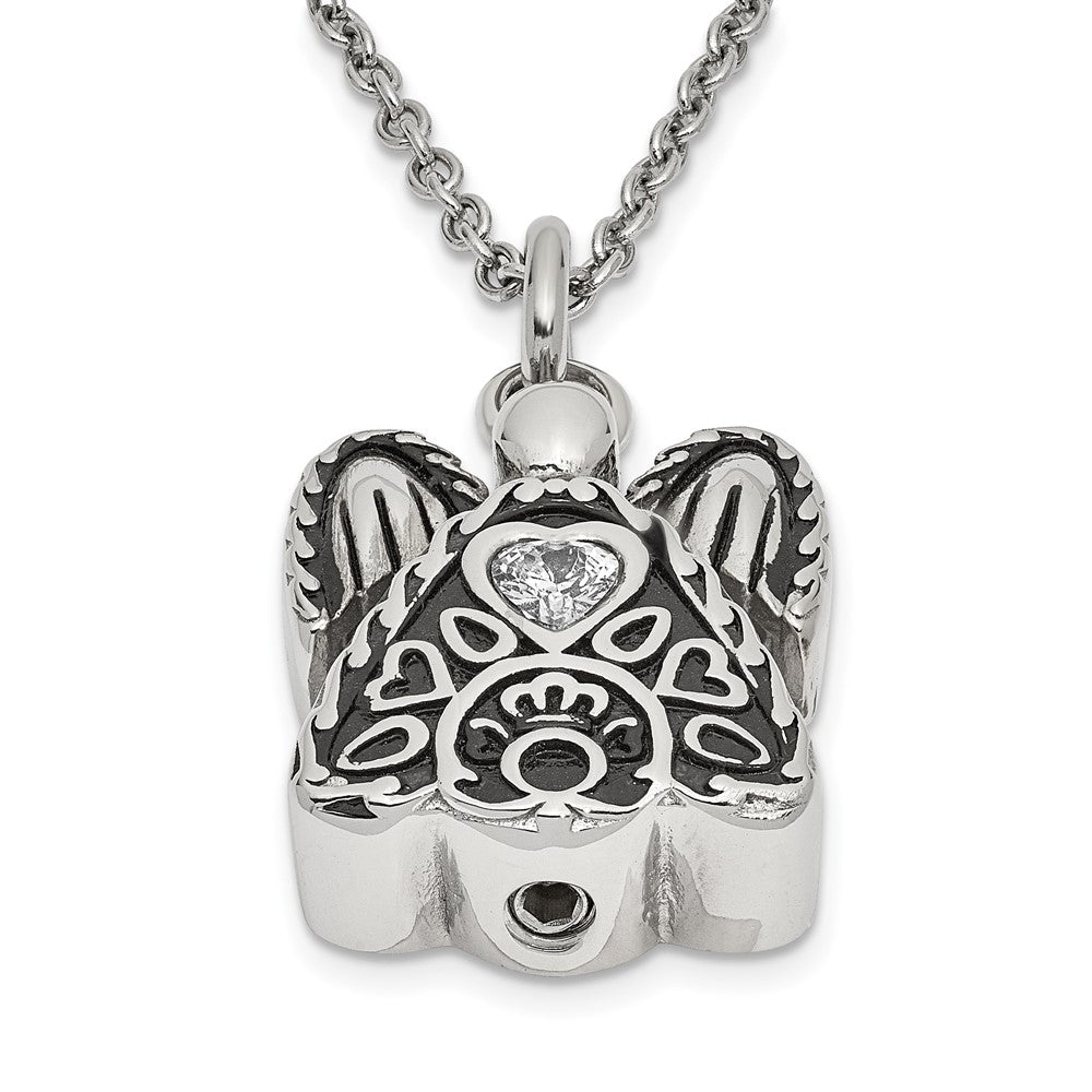 Sentimental Expressions Stainless Steel Clear CZ April Birthstone Antiqued Angel Ash Holder Necklace