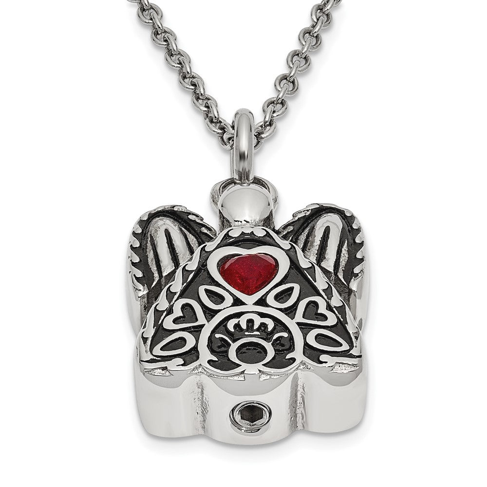 Sentimental Expressions Stainless Steel Dark Red CZ January Birthstone Antiqued Angel Ash Holder Necklace