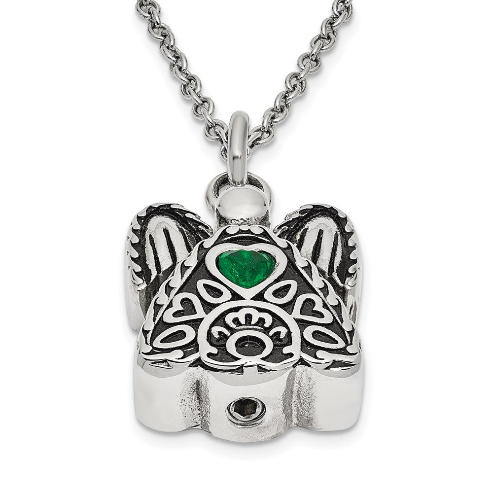Sentimental Expressions Stainless Steel Green CZ May Birthstone Antiqued Angel Ash Holder Necklace