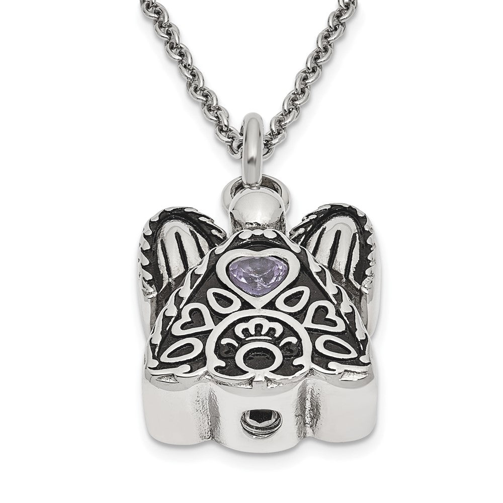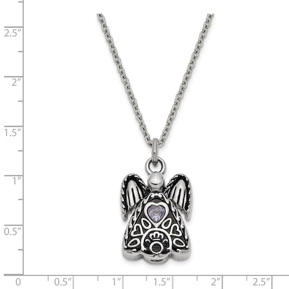 Sentimental Expressions Stainless Steel Light Purple CZ June Birthstone Antiqued Angel Ash Holder Necklace