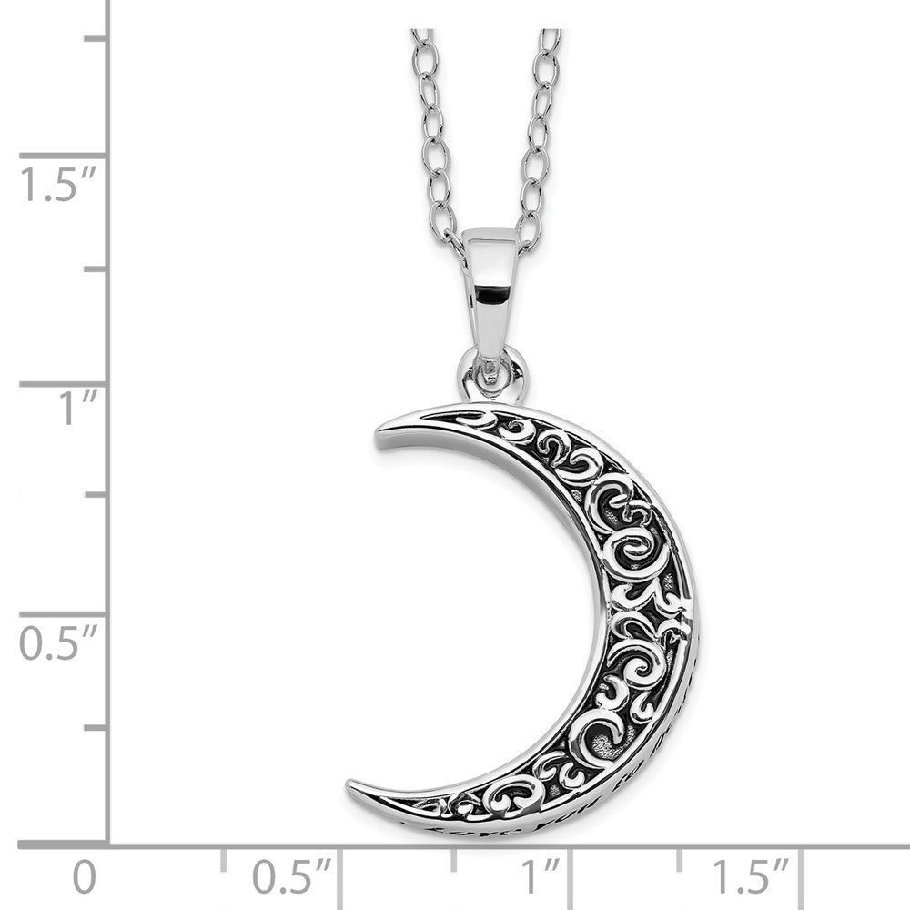 Sentimental Expressions Sterling Silver Rhodium-plated Antiqued Quarter Moon Ash Holder Necklace