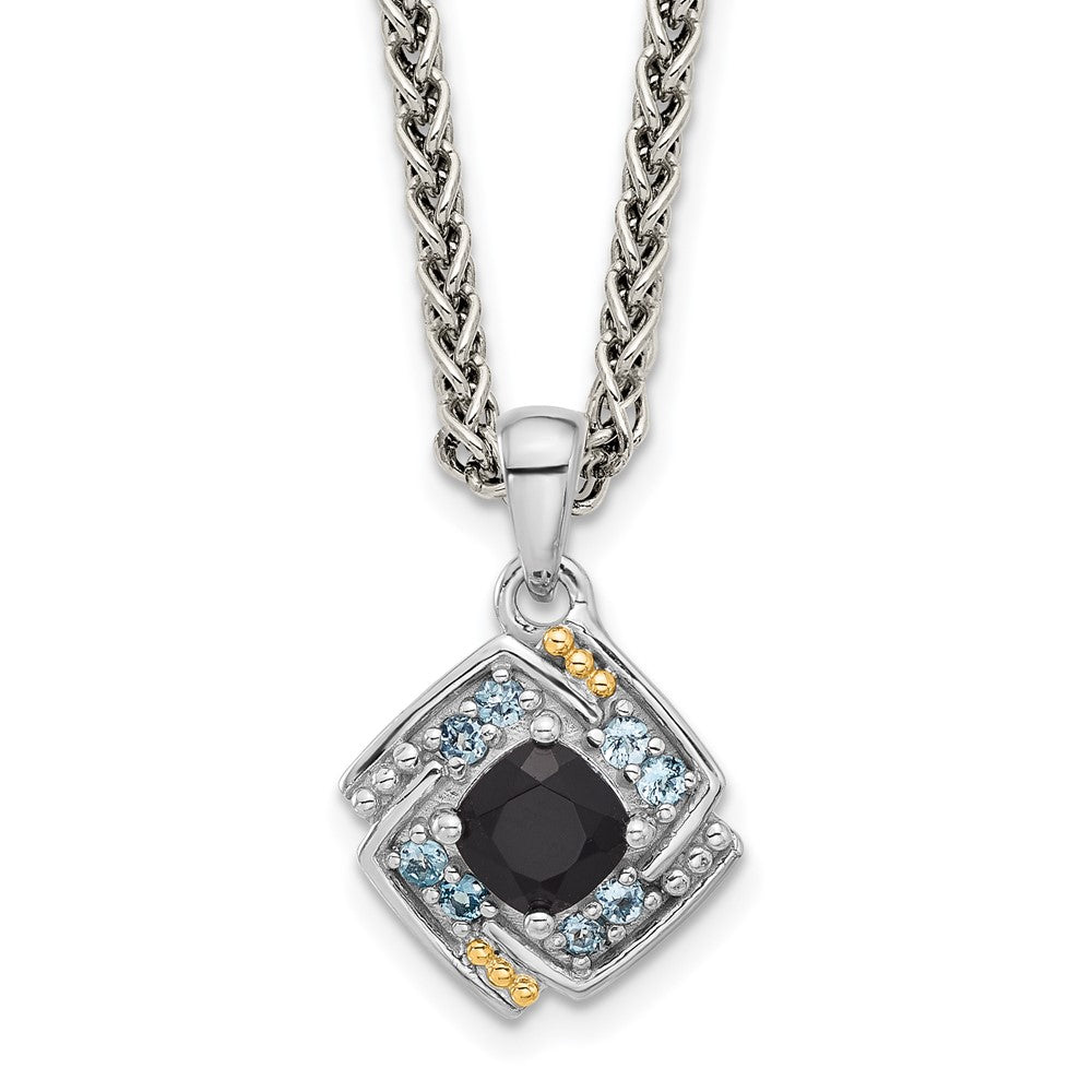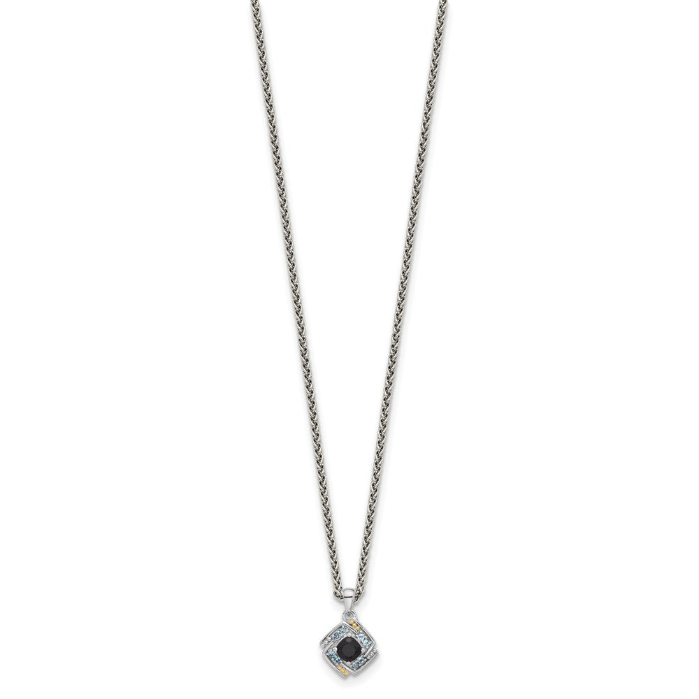 Shey Couture Sterling Silver Rhodium-plated with 14k Accent .49 Onyx and .16 Swiss Blue Topaz Necklace