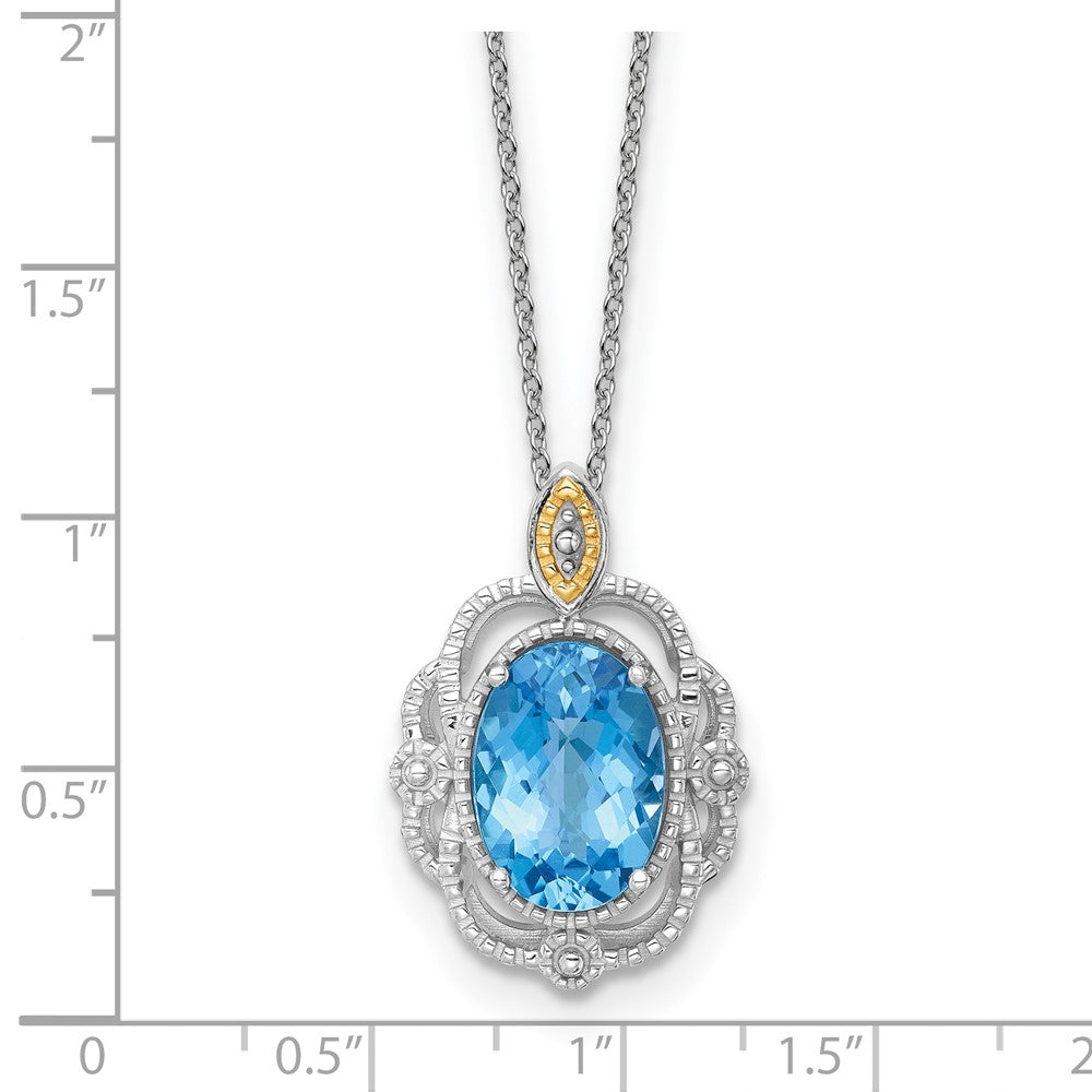 Shey Couture Sterling Silver Rhodium-plated with 14k Accent Oval Light Swiss Blue Topaz with Extension Vintage Necklace