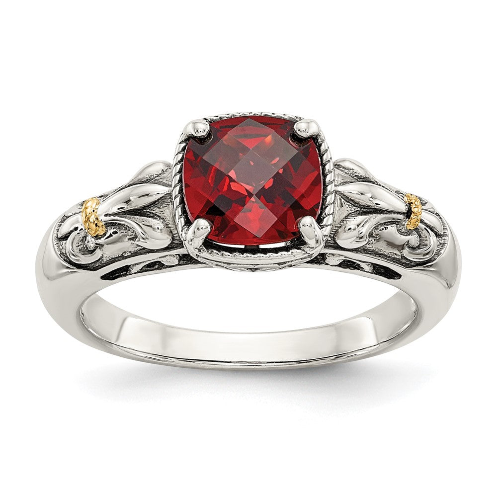 Shey Couture Sterling Silver with 14K Accent Antiqued Cushion Checkerboard Garnet Ring