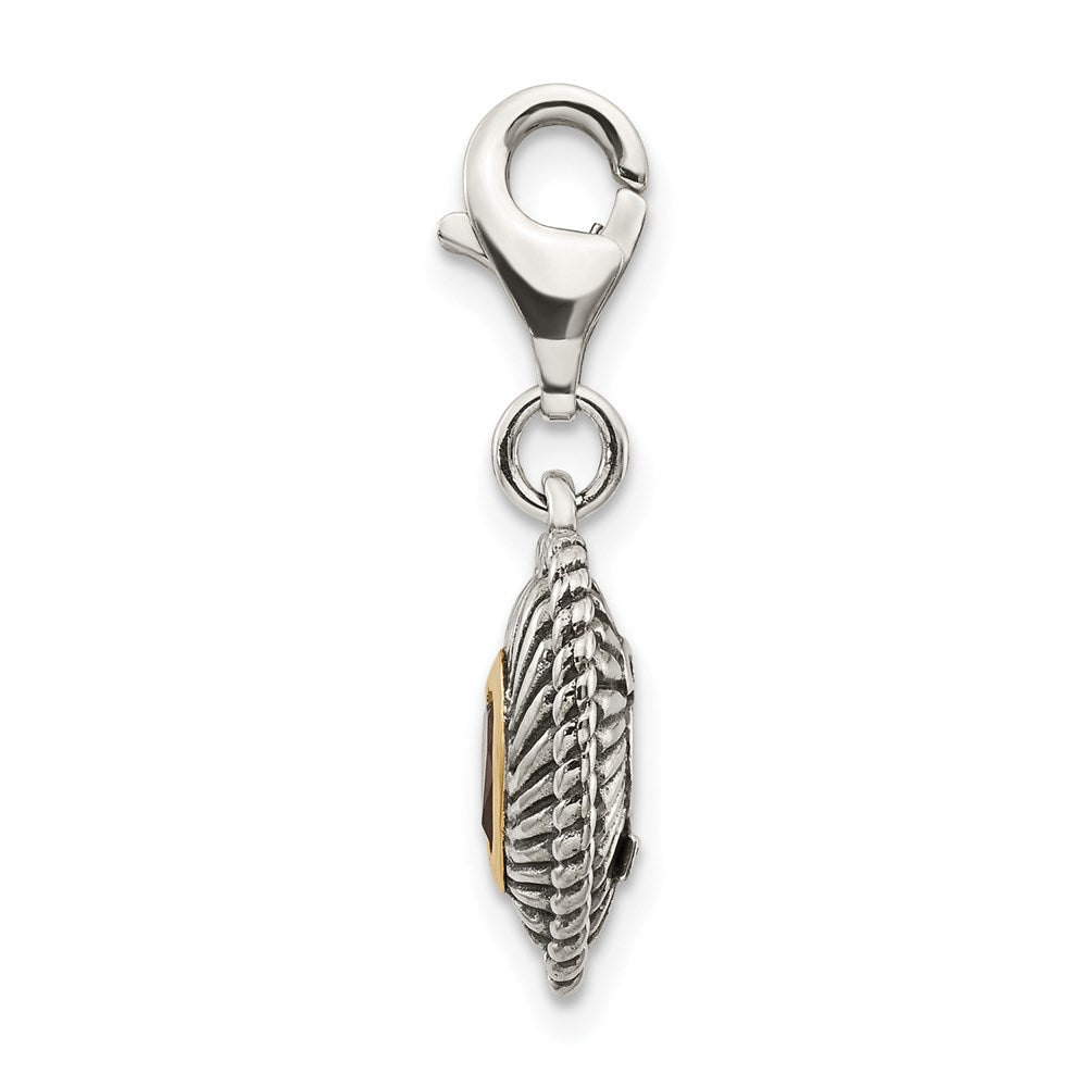 Shey Couture Sterling Silver with 14K Accent Antiqued Heart Shaped Garnet with Lobster Clasp Heart Charm