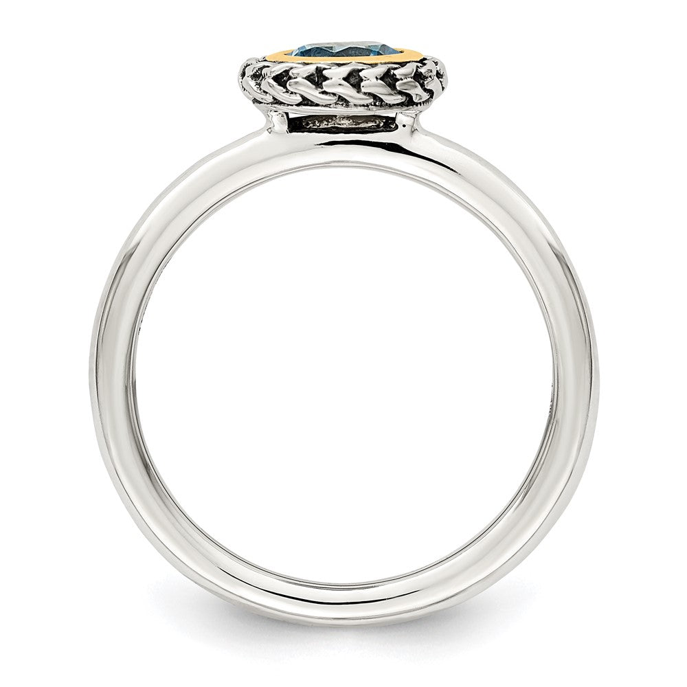 Shey Couture Sterling Silver with 14K Accent Antiqued Round Blue Topaz Ring