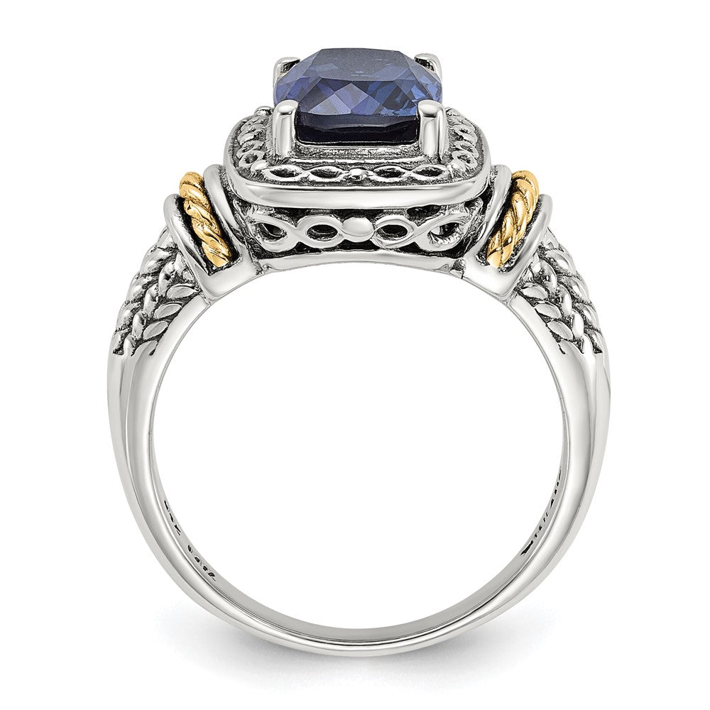 Shey Couture Sterling Silver with 14k Antiqued Lab Created Sapphire Ring