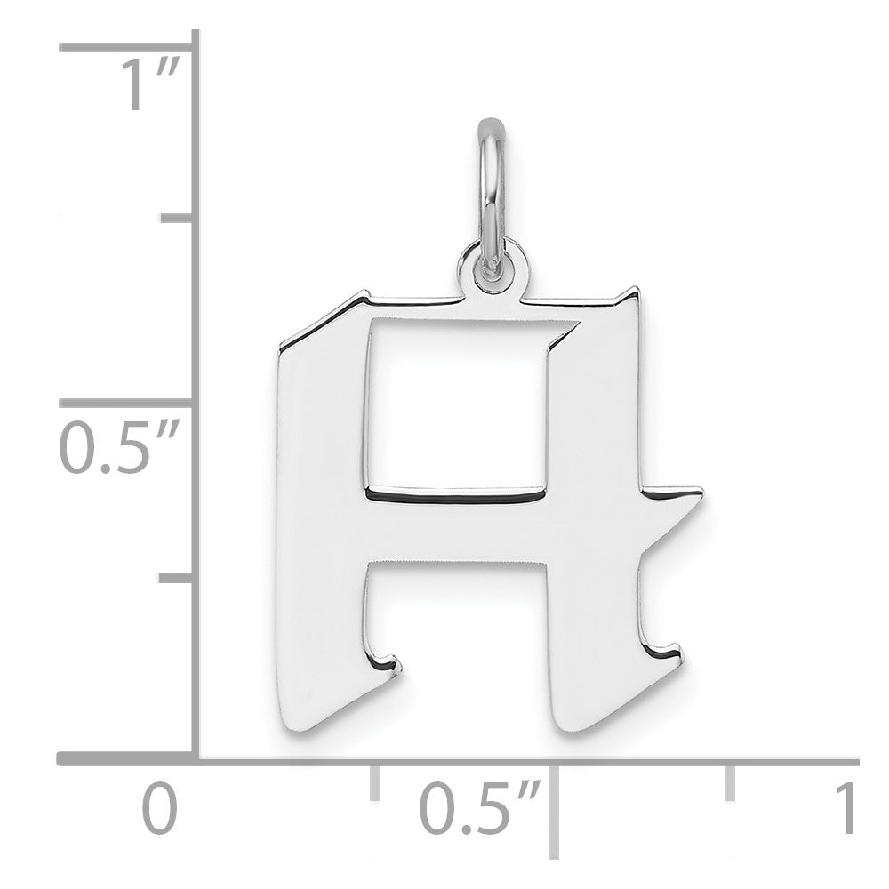 Small Sterling Silver Rhodium-plated Artisan Block Letter H Initial Charm