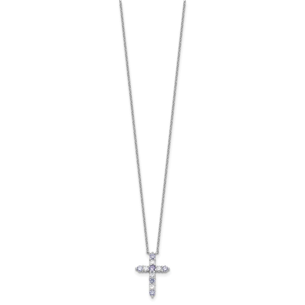 SS RH-plated Lt Purple CZ June Birthstone Cross w/2in ext Necklace