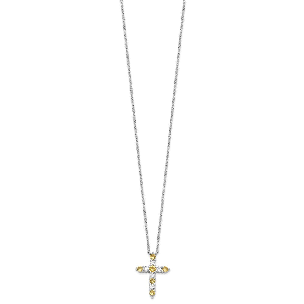 SS RH-plated Yellow CZ Nov Birthstone Cross w/2in ext Necklace