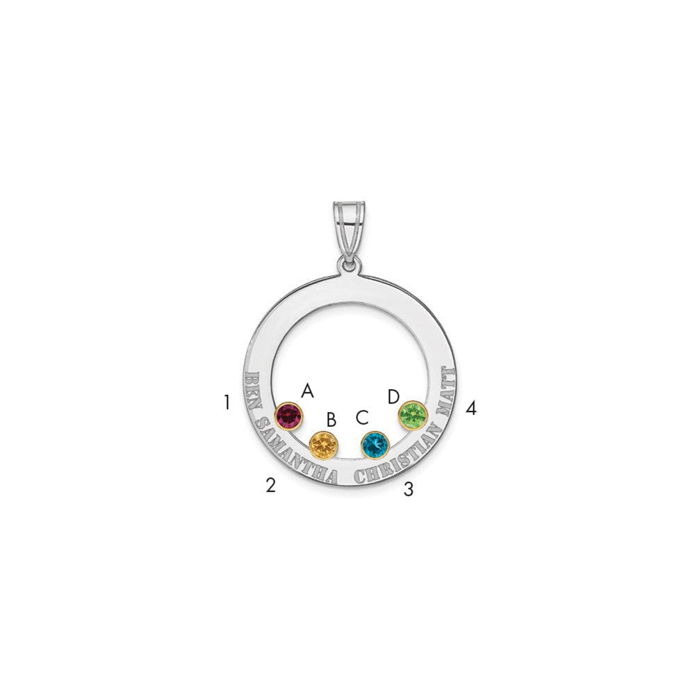 SS/Rhod-plated 4 Birthstone Circle with 14k Bezel Family Pendant