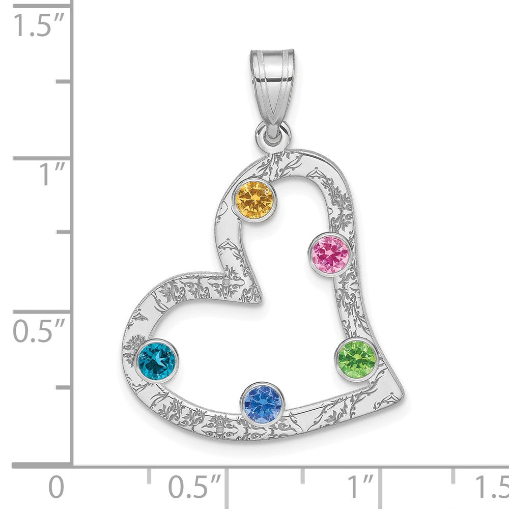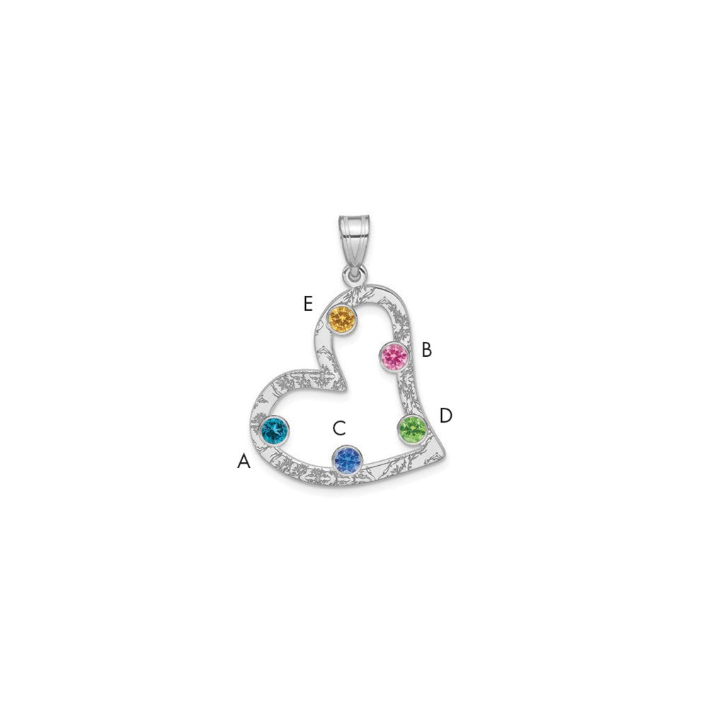 SS/Rhodium-plated 5 Birthstone Heart with SS Bezel Family Pendant