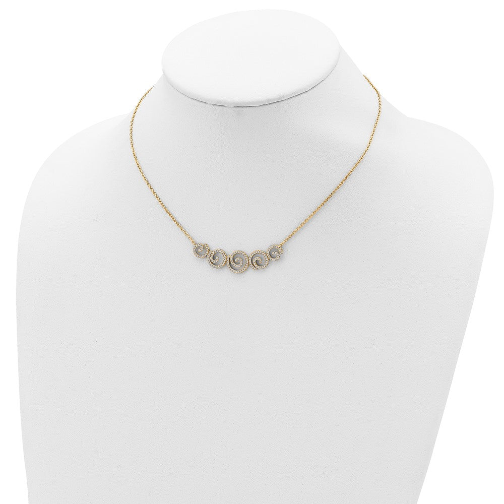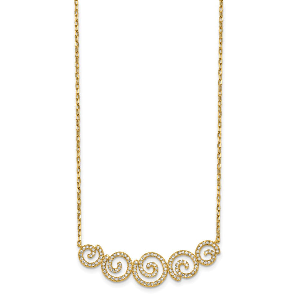 Sterling Shimmer Sterling Silver Gold-tone Flash gold-plated 133 Stone CZ Swirls Necklace with extender