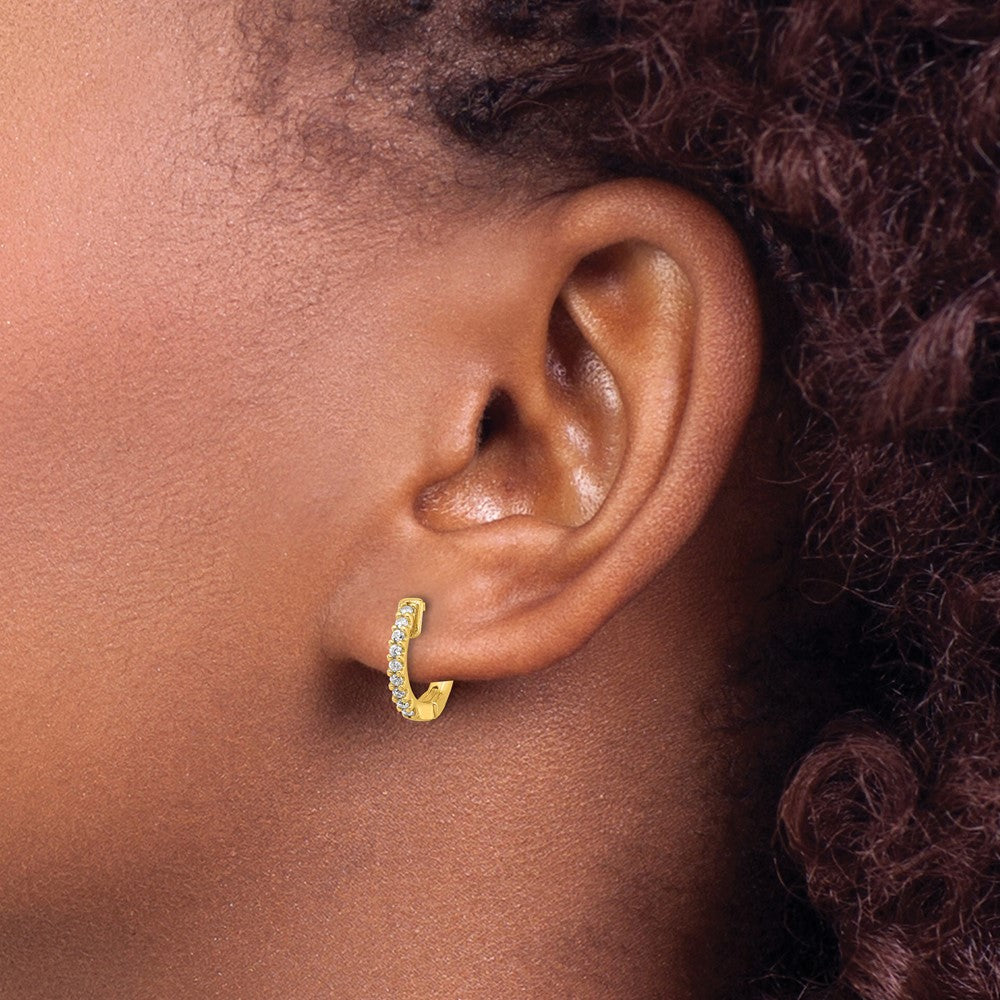 Sterling Shimmer Sterling Silver Gold-tone Flash Gold-plated CZ 18 Stone Hinged Hoop Earrings