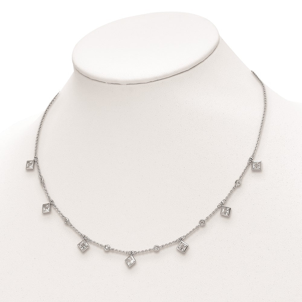 Sterling Shimmer Sterling Silver Rhodium-plated 13 Stone 13 Station CZ Necklace with extender