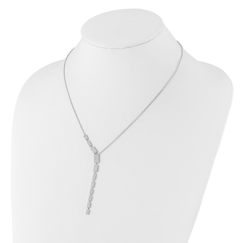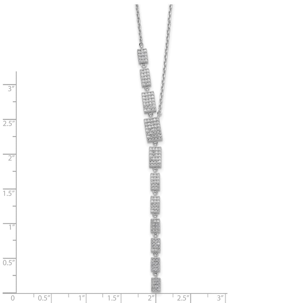 Sterling Shimmer Sterling Silver Rhodium-plated CZ 188 Stone with extender Rectangle Drop Necklace