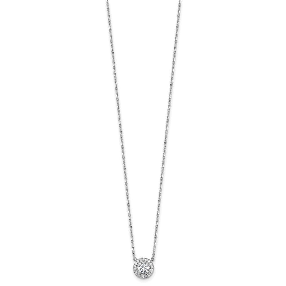 Sterling Shimmer Sterling Silver Rhodium-plated CZ 19 Stone with extender Round Necklace
