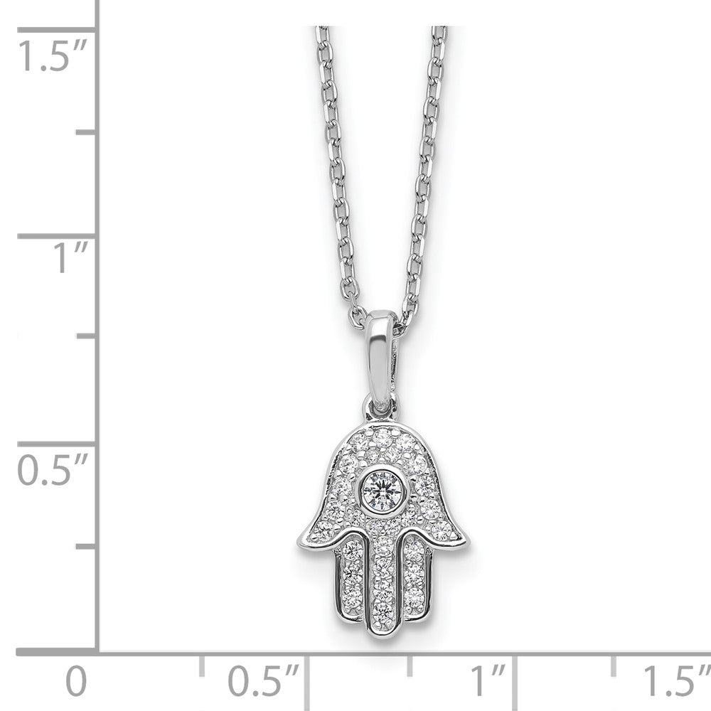 Sterling Shimmer Sterling Silver Rhodium-plated CZ 28 Stone with extension Chamseh/Hamsa Necklace