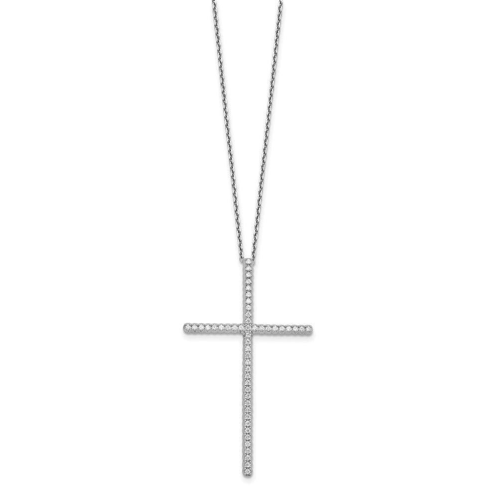 Sterling Shimmer Sterling Silver Rhodium-plated CZ 50 Stone Cross with Extension Necklace