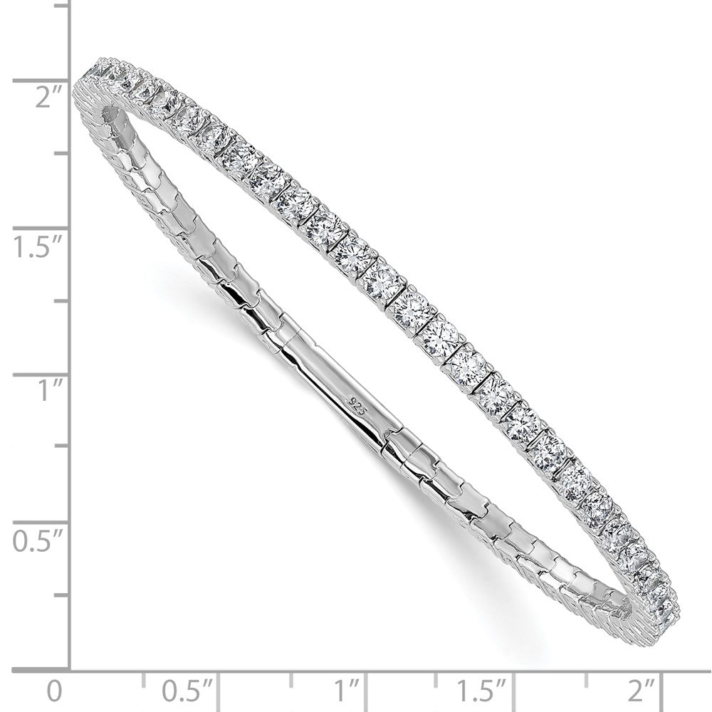 Sterling Shimmer Sterling Silver Rhodium-plated CZ 52 Stone Flexible Bangle Bracelet