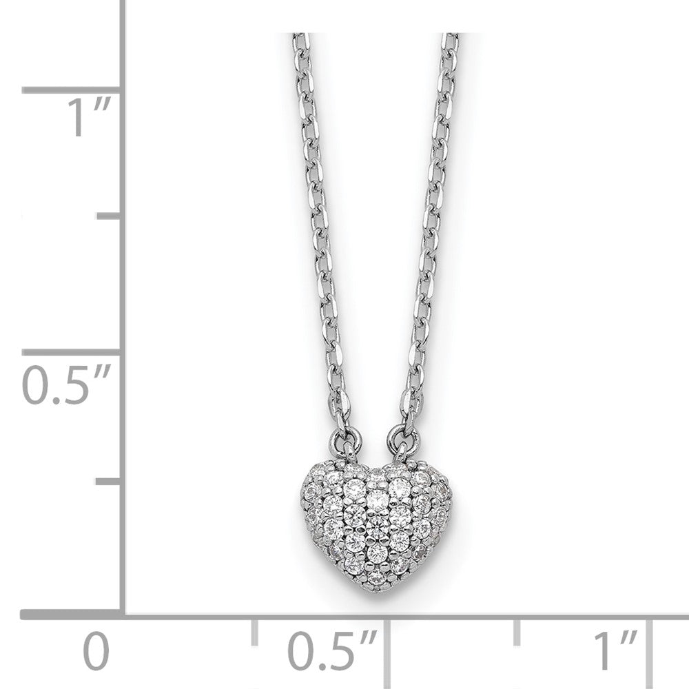 Sterling Shimmer Sterling Silver Rhodium-plated CZ 66 Stone with extender Pave Heart Necklace