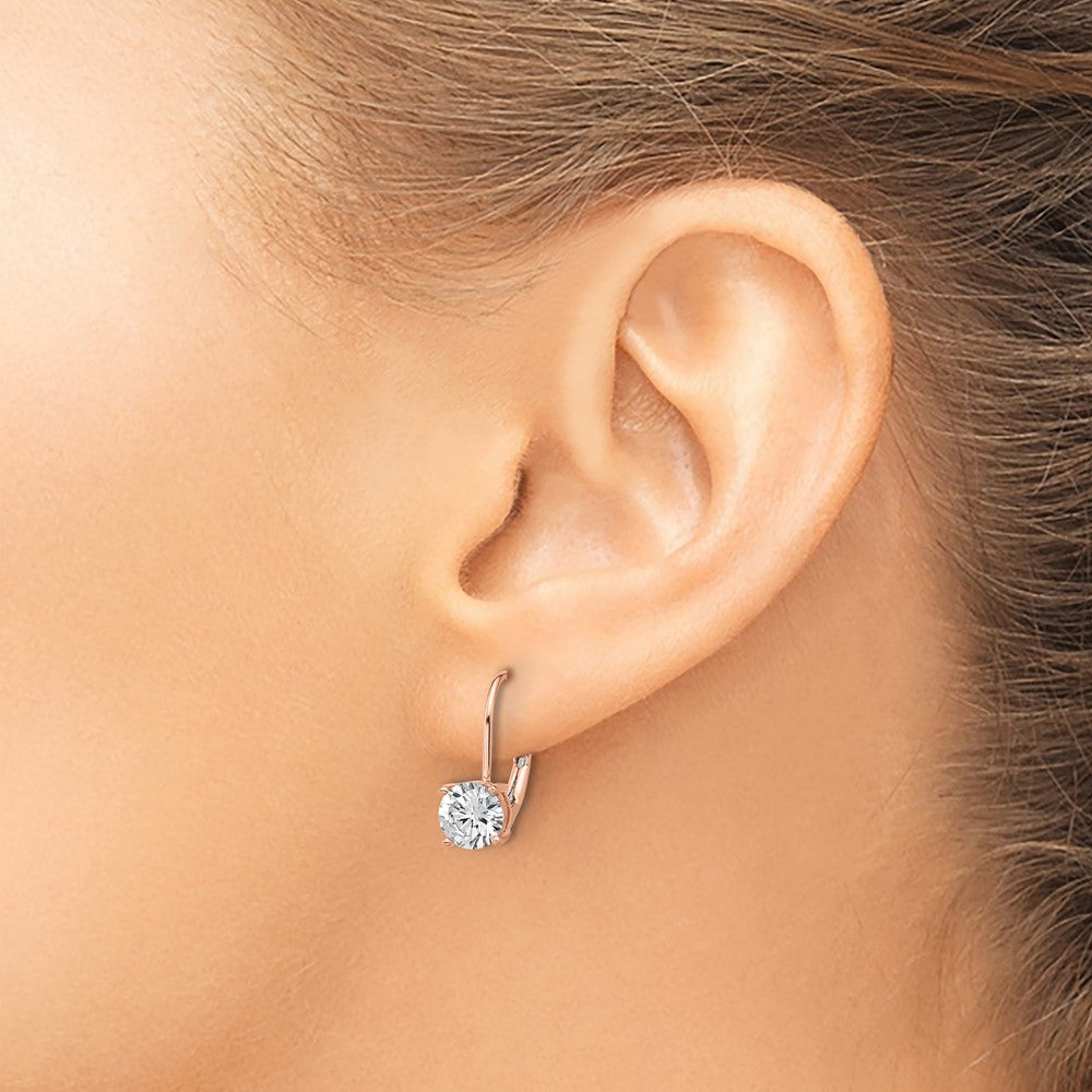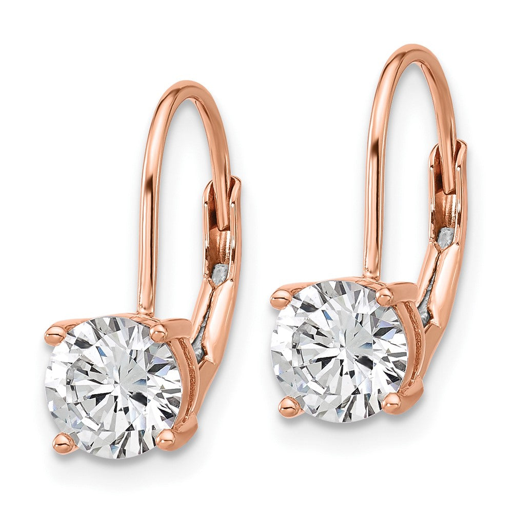 Sterling Shimmer Sterling Silver Rose-tone Flash Rose-gold Plated CZ 2 Stone Leverback Earrings