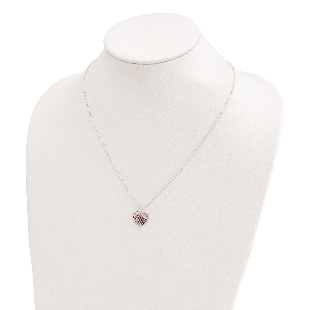 Sterling Silver 18+2in w/ext. Pink, Red & Clear CZ Heart Necklace