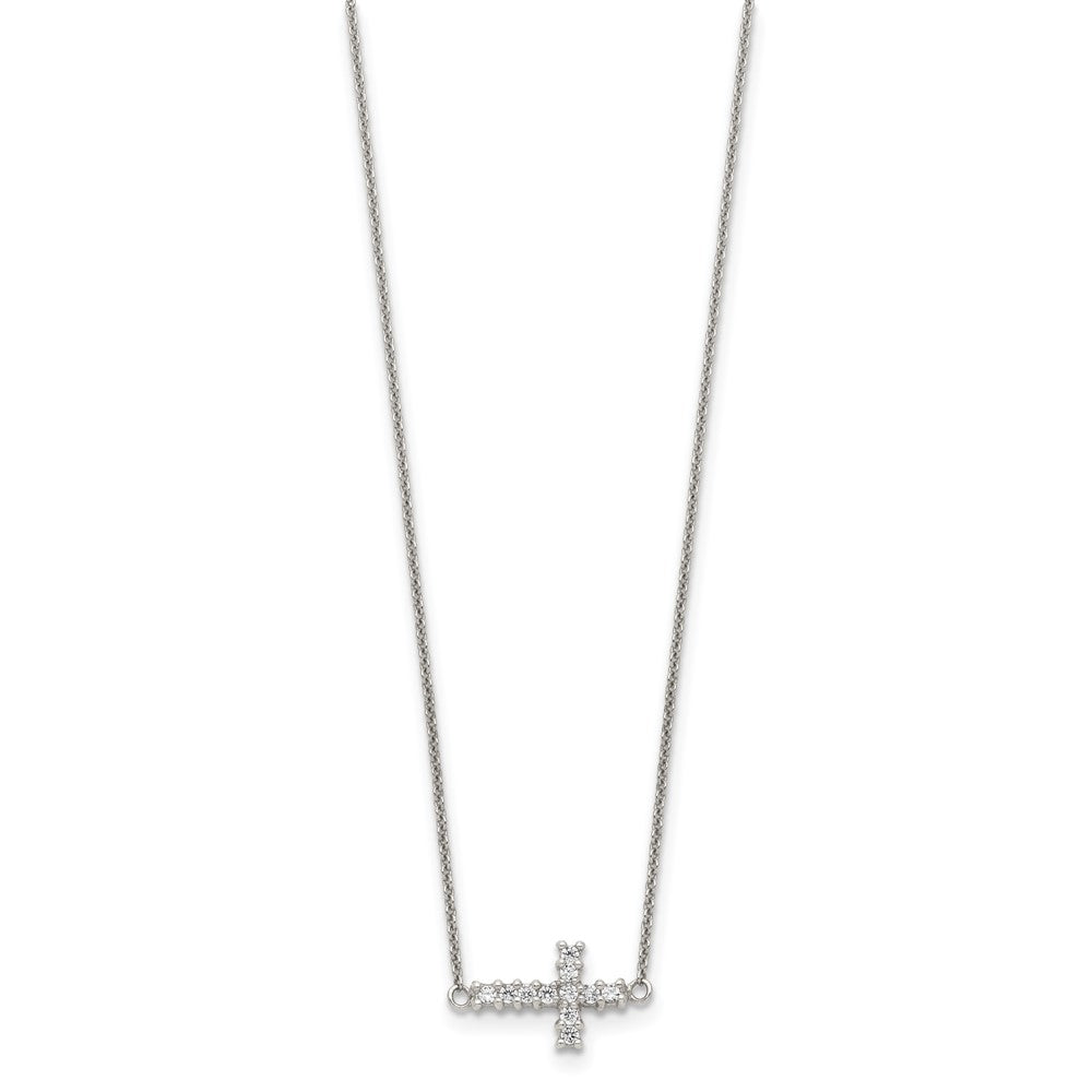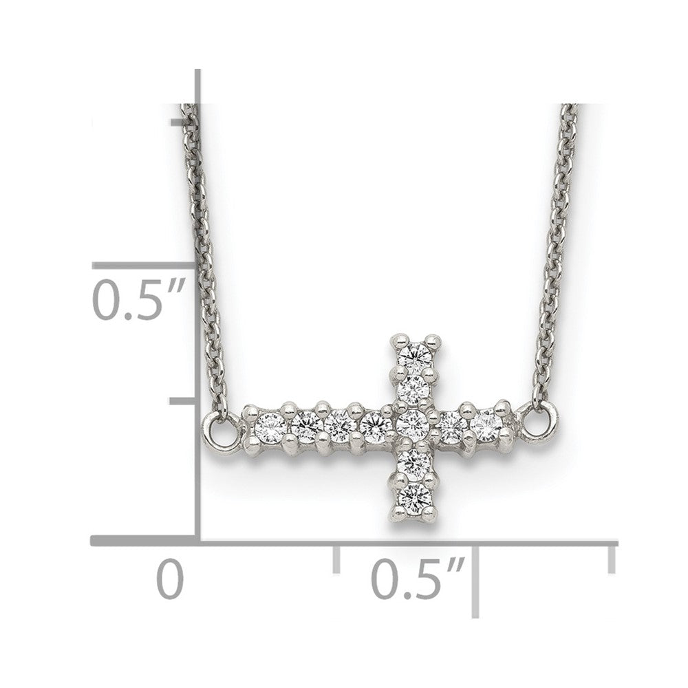Sterling Silver 18in CZ Sideways Cross Necklace