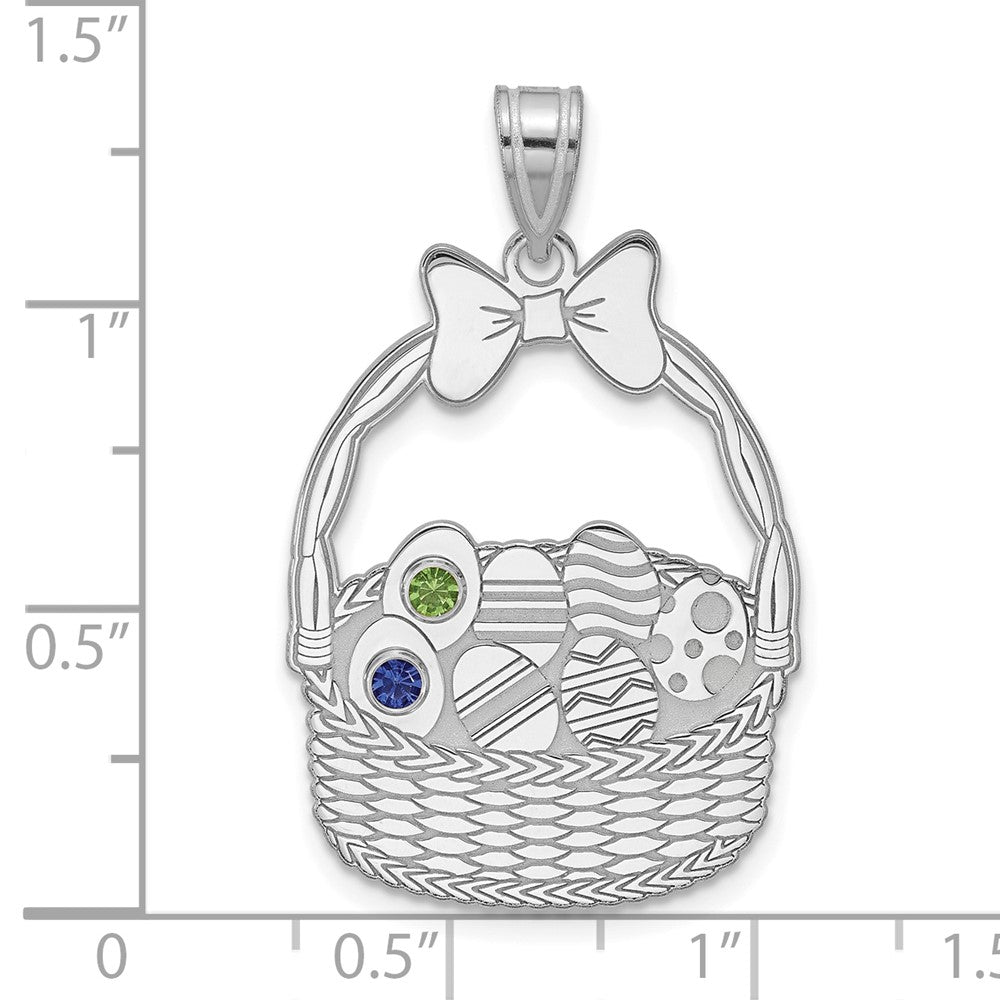 Sterling Silver 2 Birthstone with SS Bezel Easter Basket Pendant